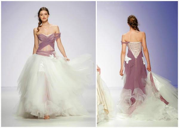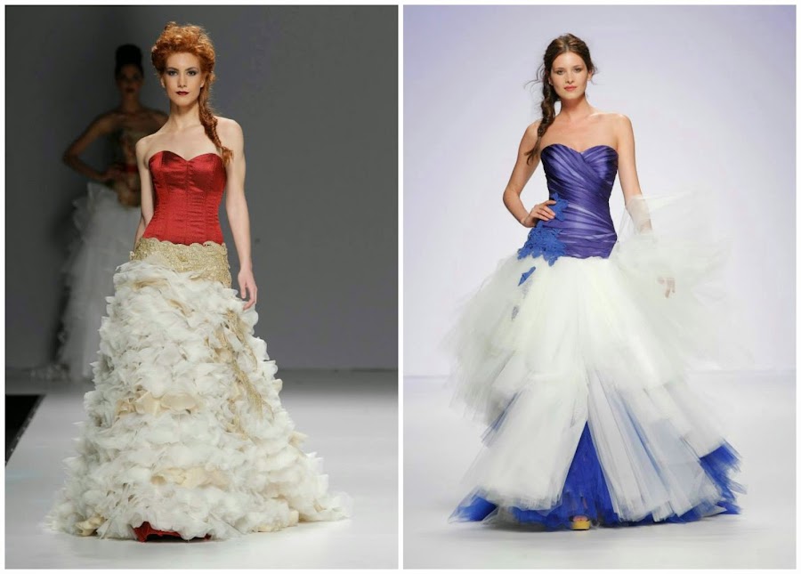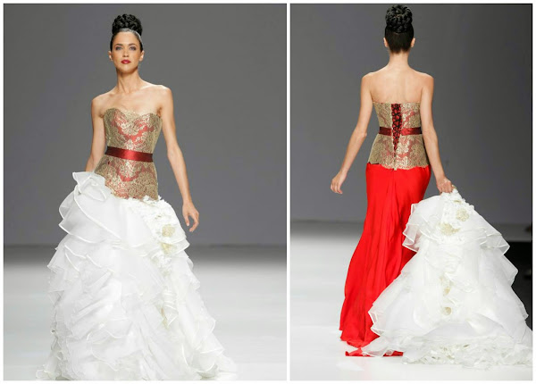 Faldas que arrasan, vestidos con cremalleras de cristal, faldas con acumulación de tejido en la parte posterior, escotes de vértigo, faldas cortas, corpiños, sobrefaldas y como novedad abrigos que se adaptan al cuerpo de la novia como una segunda piel.