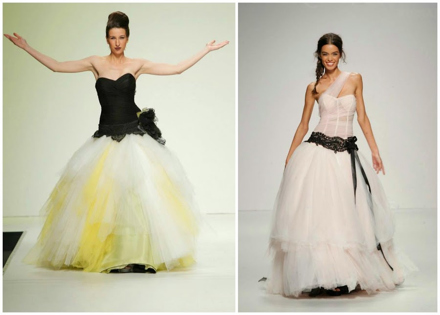 En esta colección se utilizan tejidos como tules, chantillis, encajes de calais, guipures.... y predominan las transparencias.