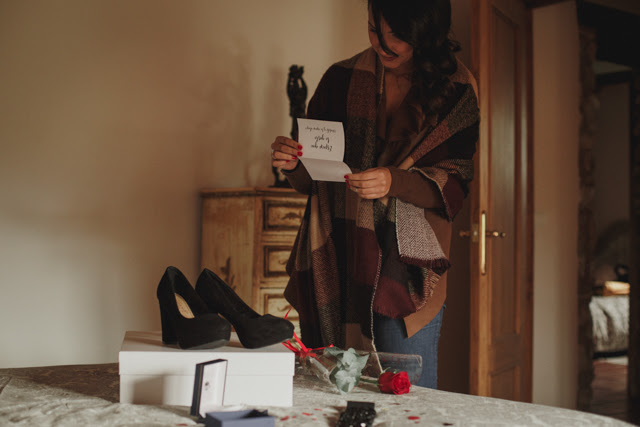 Los dos vestidos con las mejores galas, les espera un romántico juego de pistas , donde ella debería seguir cada una de ellas, para llegar a la sorpresa final: Josep, su pareja, arrodillado con un anillo de compromiso dentro de un corazón de velas y pétalos de rosa. Ohhh... Podéis imaginar la cara de Raquel no? La imágenes de Eloy Oviedo, lo dicen todo.