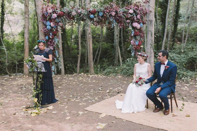 La zona de la ceremonia la marcaba un arco enorme suspendido a más de dos metros de altura que no necesitó de más elementos que el propio bosque y los bancos de madera en los que se pudieron sentar los invitados.