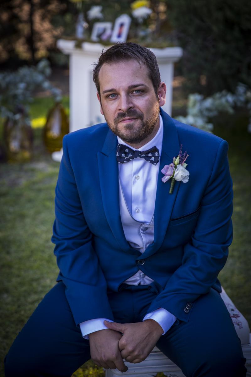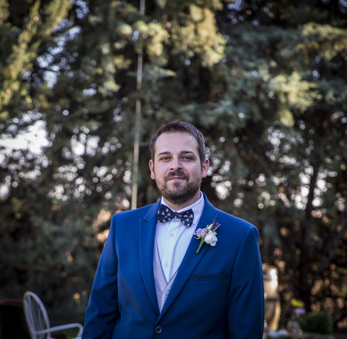 El chico de la pajarita de calaveras, con los ojos llenos de mas amor y de alegría, que he visto en muchas bodas, en definitiva y sin mas “mi Rober”.
