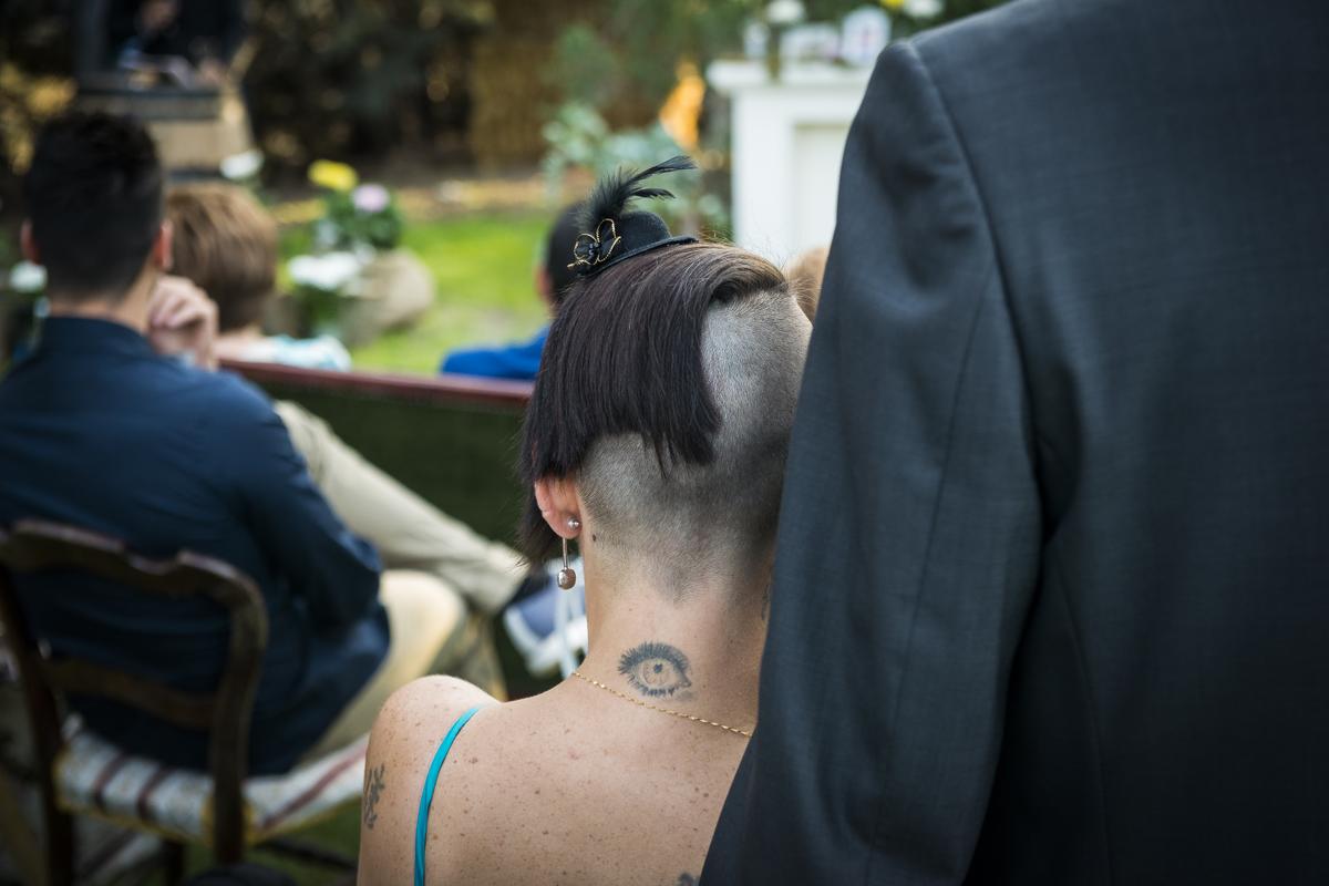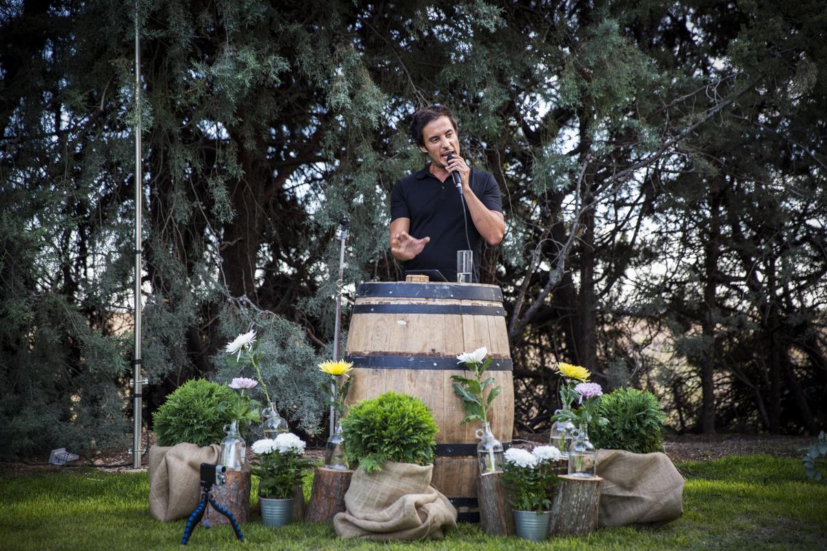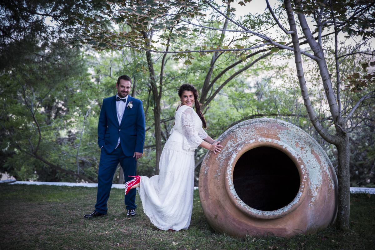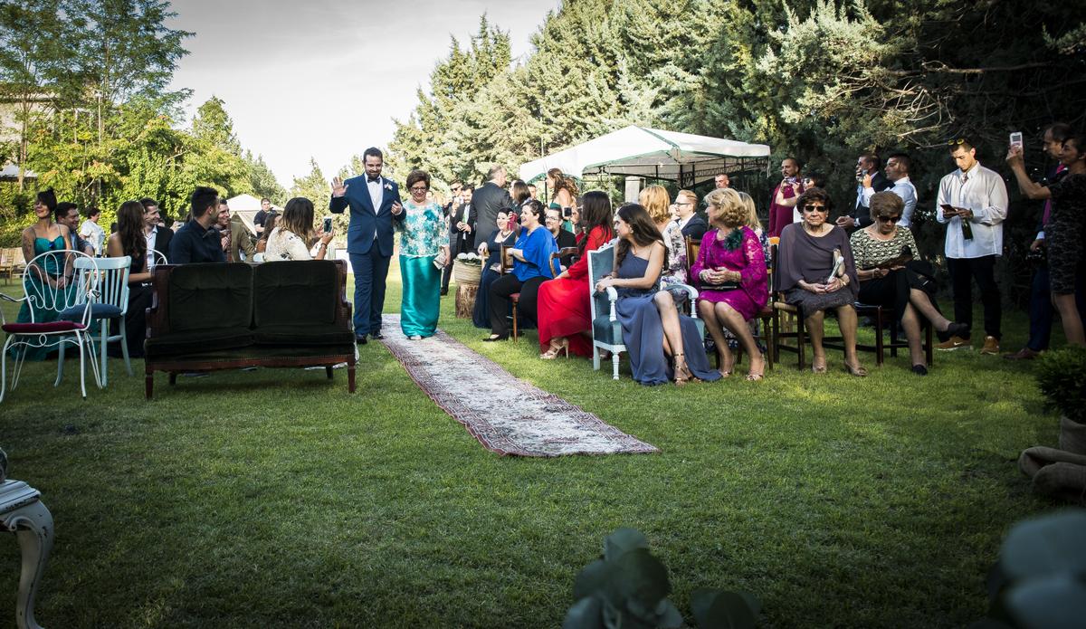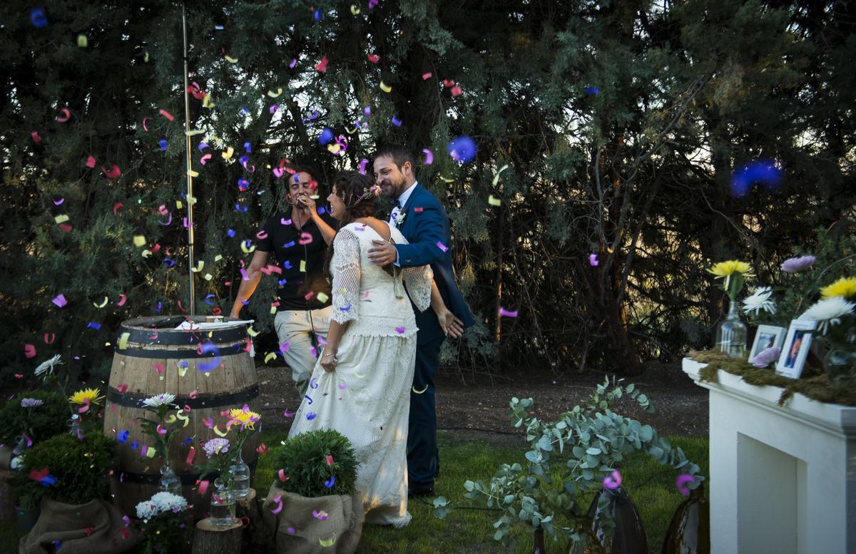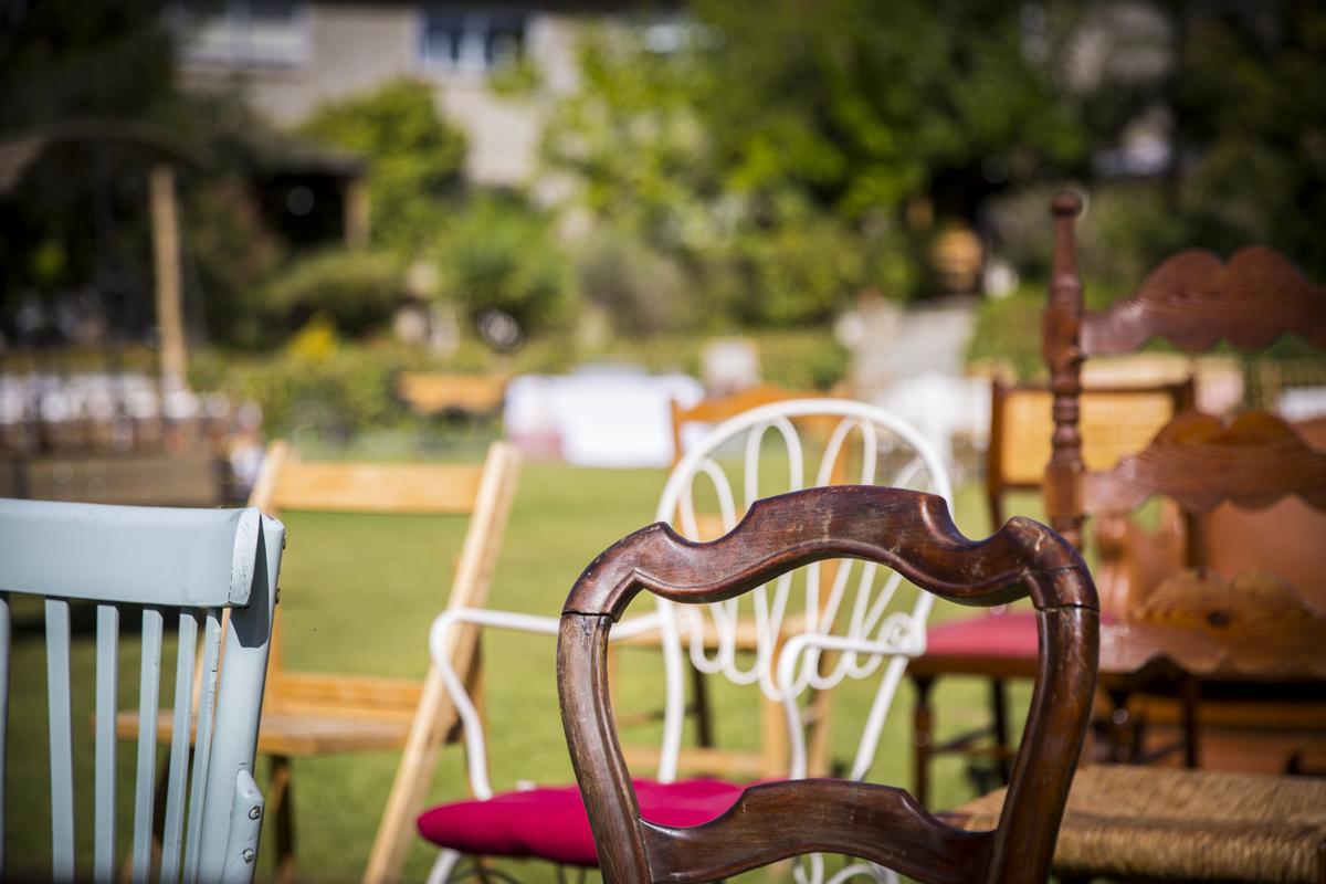 Llevábamos mucho tiempo con ganas de hacer una ceremonia civil como la que hicimos en la boda de Alexia y Rober, una ceremonia con un backdrop con una chimenea acompañada de damajuanas de distintos colores con helecho y un barril como mesa para el oficiante acompañado de troncos con botellas con flor que junto con sillas, sillones y bancos de diferente estilos y colores, dieron un toque precioso al conjunto.