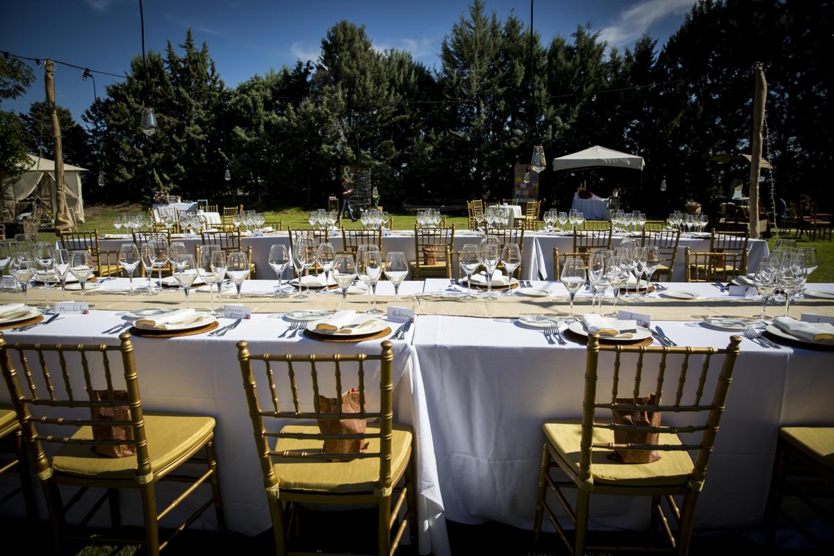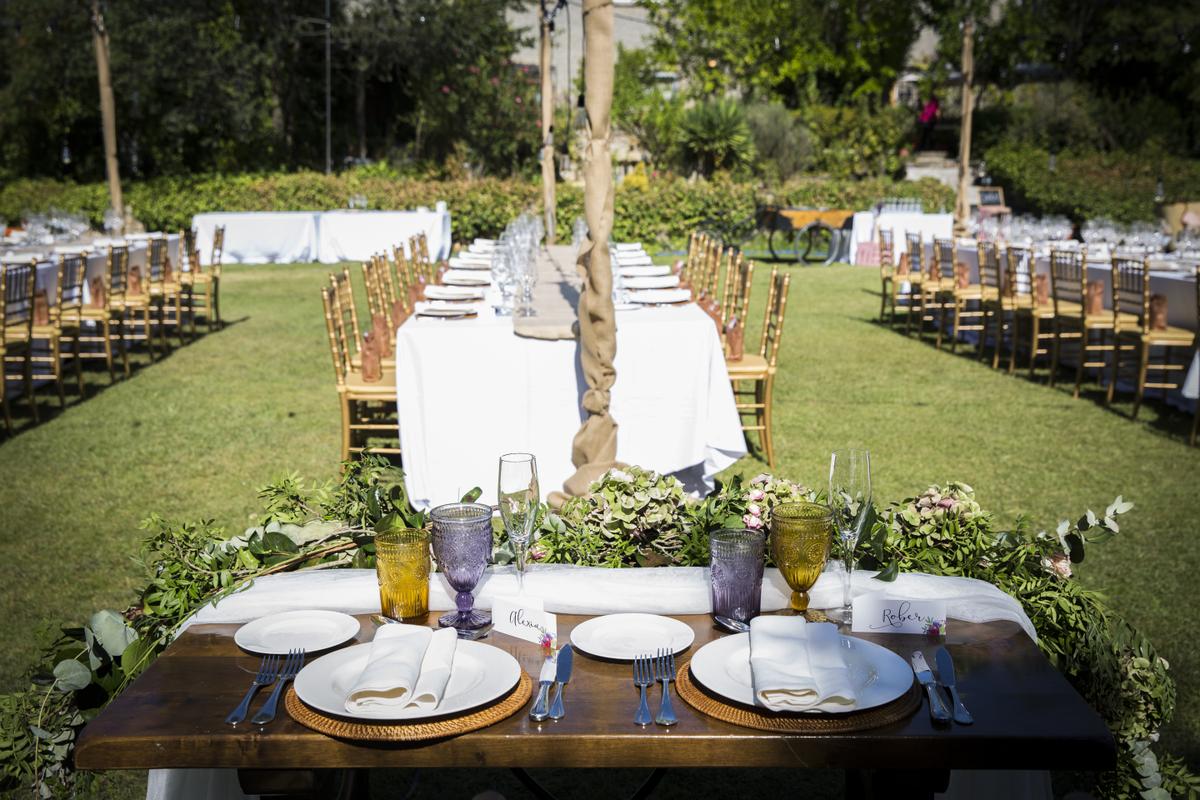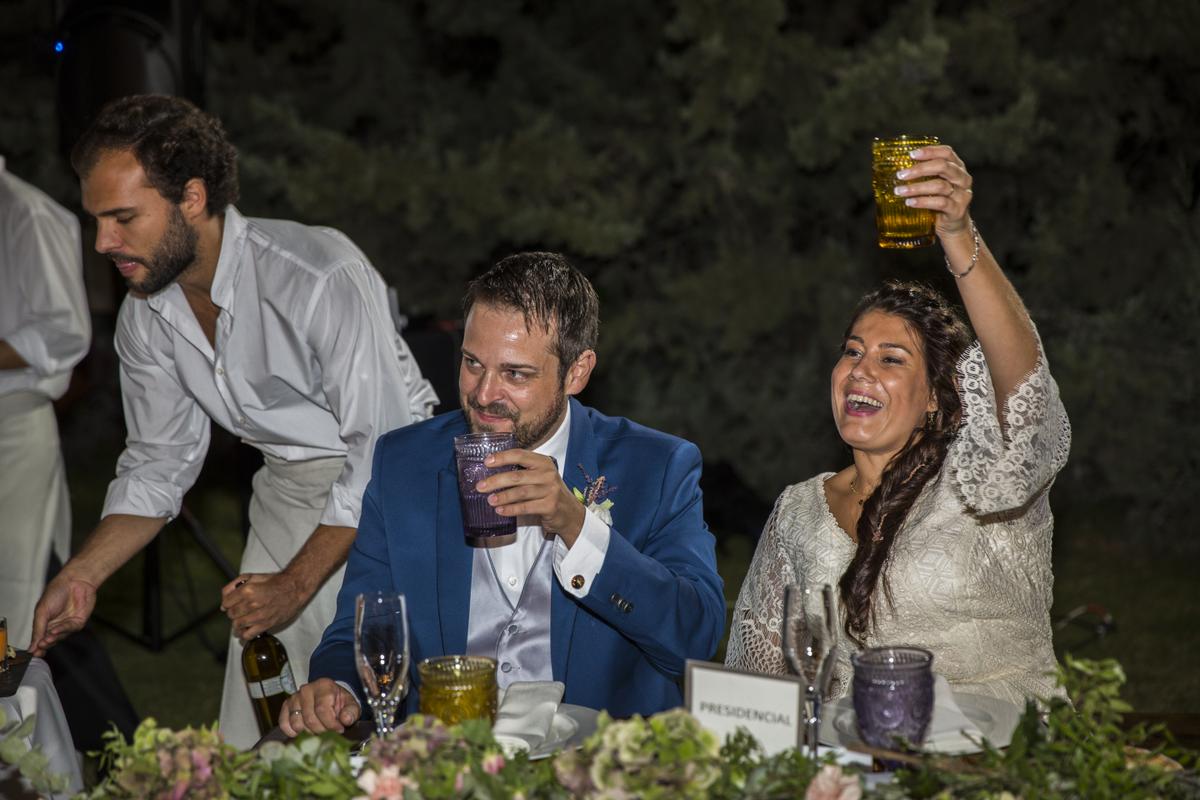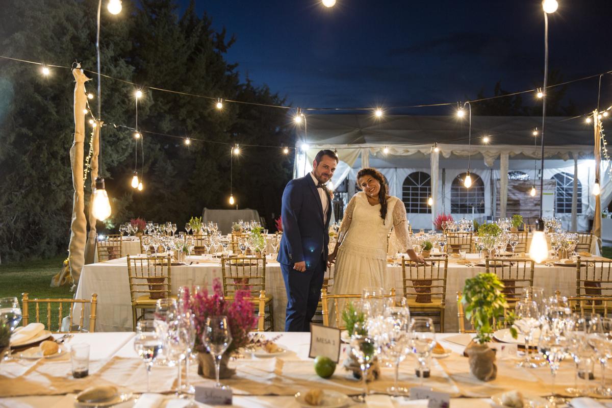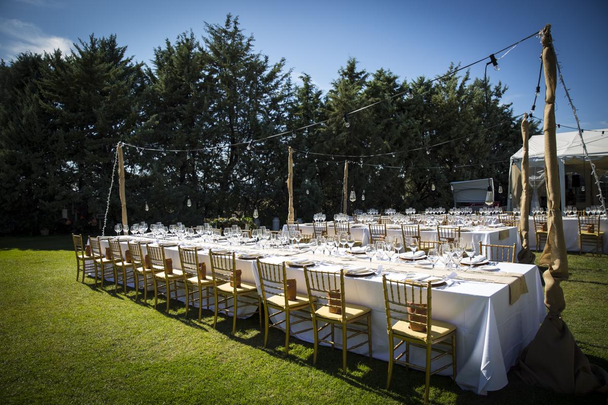 Al ser mesas imperiales, se pusieron marca-sitios para todos los invitados, con sus regalos en cada plato y minutas personalizadas, y toda la papelería de la boda fue diseñada por Cristina, amiga de la novia. Cada detalle se cuidó al máximo. Y es que en esta boda, no se dio puntada sin hilo.