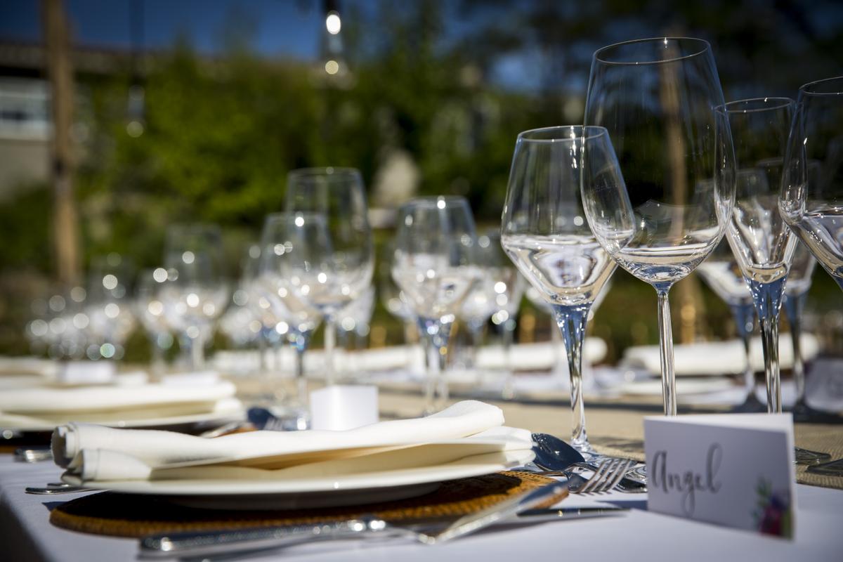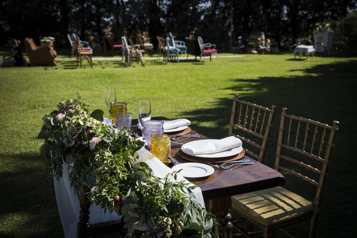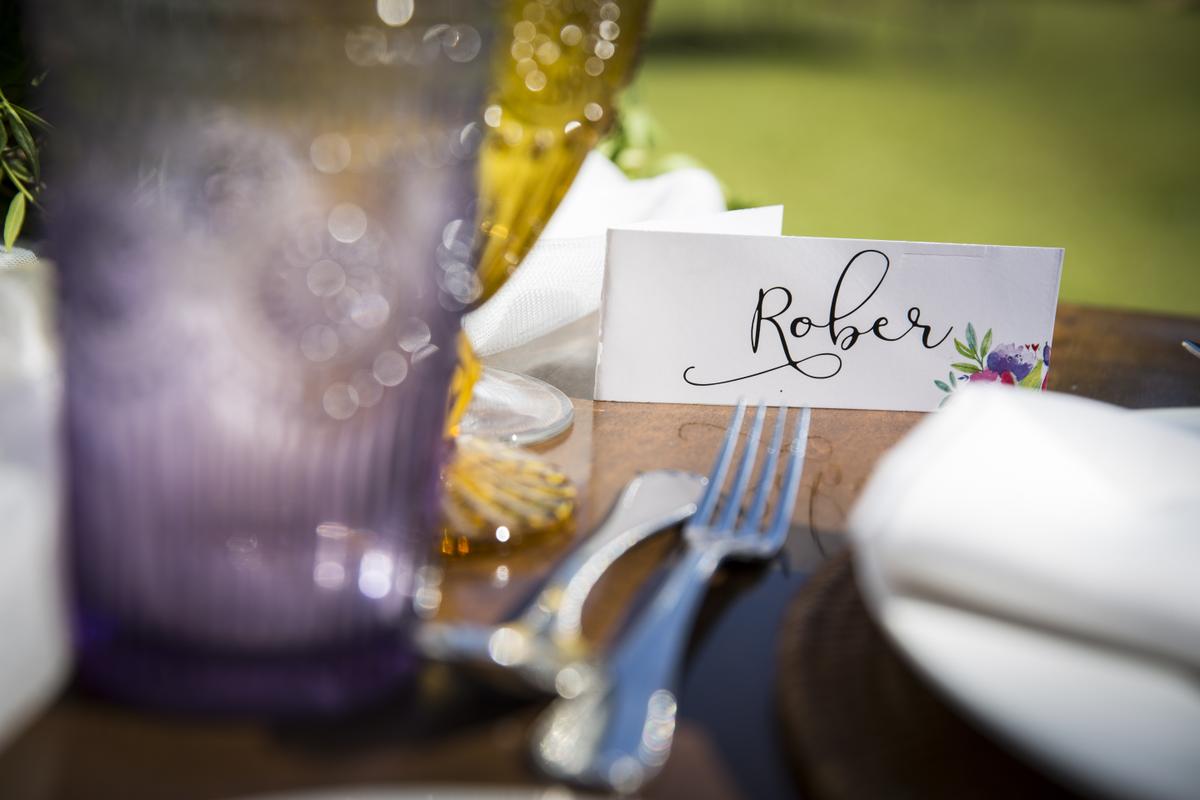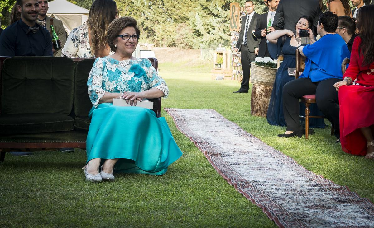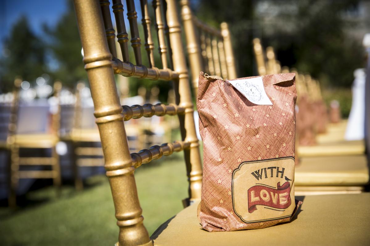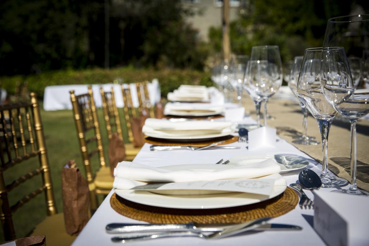 Al ser mesas imperiales, se pusieron marca-sitios para todos los invitados, con sus regalos en cada plato y minutas personalizadas, y toda la papelería de la boda fue diseñada por Cristina, amiga de la novia. Cada detalle se cuidó al máximo. Y es que en esta boda, no se dio puntada sin hilo.