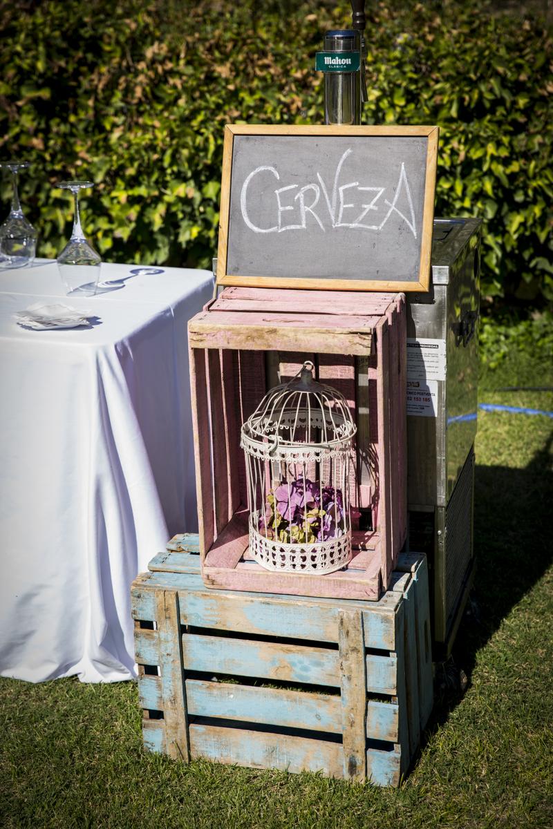 Una decoración con lo justo y necesario, ni más ni menos. Siempre que nos llegan novias les aconsejo un mínimo de rincones en el cóctel, principalmente para que no quede desangelado ni pobre, pero tampoco abusar. Y los rincones que pusimos en la boda de Alexia y Rober fueron esos, los justos y necesarios.