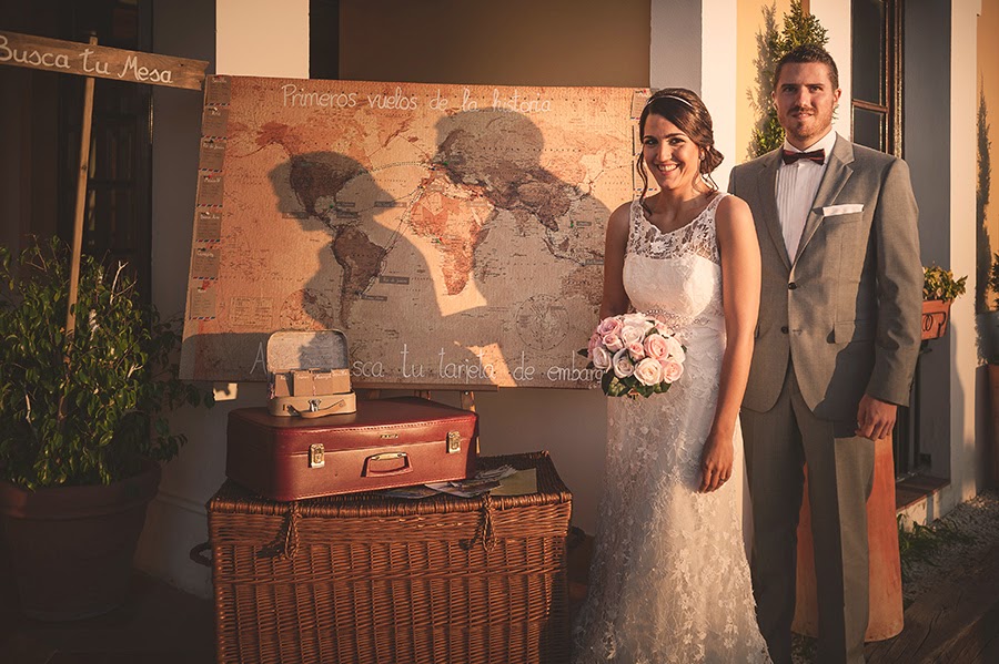 Nuestra temática la teníamos clara desde antes incluso de decidir que nos casábamos, nos encanta viajar, por tanto, la boda giraría en torno a los viajes.