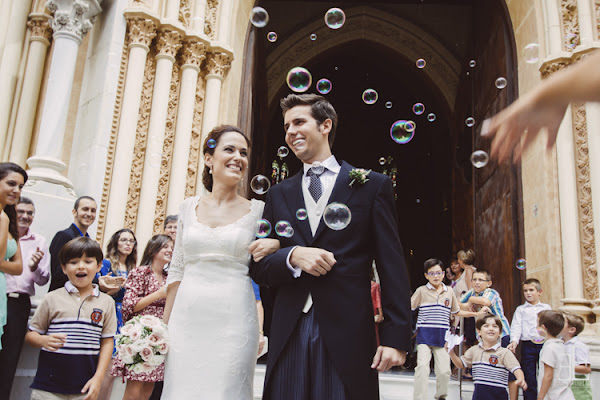 Se casaron en pleno centro histórico de Málaga, en la Iglesia del Sagrado Corazón, fue una ceremonia llena de momentos emotivos y miradas de complicidad entre los novios. A la salida los recibieron los invitados con pompas de jabón y pétalos.