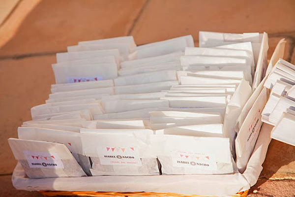 Otro de los detalles fue los regalos, les dimos abanicos a las señoras y al entrar en el salón tenían un paquete con su nombre de esa forma evitamos el repartir (que no me gustaba nada).