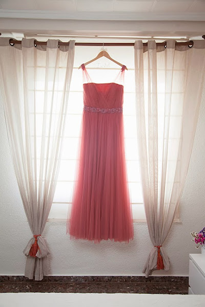 No me declaro fan del protocolo así que mi boda era un reflejo de ello, por eso elegí un vestido de color. Los blancos no me favorecían y sin dudarlo fue verlo puesto, la caída que tenía y la cara de todas en el probador y lo tuve claro... ESTE ERA MI VESTIDO DE NOVIA. Un vestido en color coral de la colección de fiesta de Aire Barcelona.