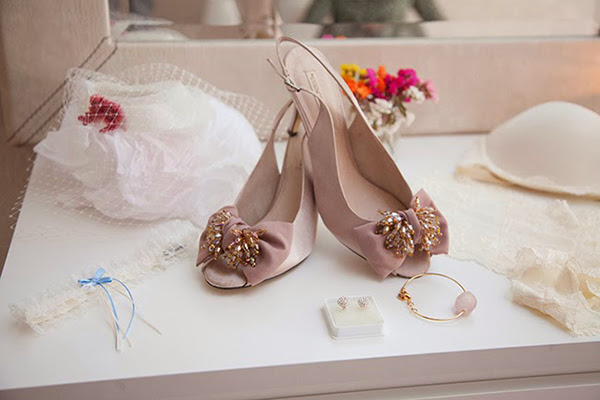 El resto de complementos eran sencillos una pulsera de Tous con una piedra en rosa palo que me regalaron en la despedida de soltera, pendientes de oro blanco de Swarovski y anillo de pedida.