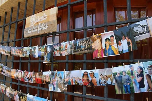 Pusimos un rincón de bienvenida para los invitados con algunas fotos nuestras, pero además aprovechamos un ventanal para poner fotos de todos los invitados, conseguir fotos de más de 100 personas fue todo un reto pero fue genial el momento en el que todo el mundo se buscaba.