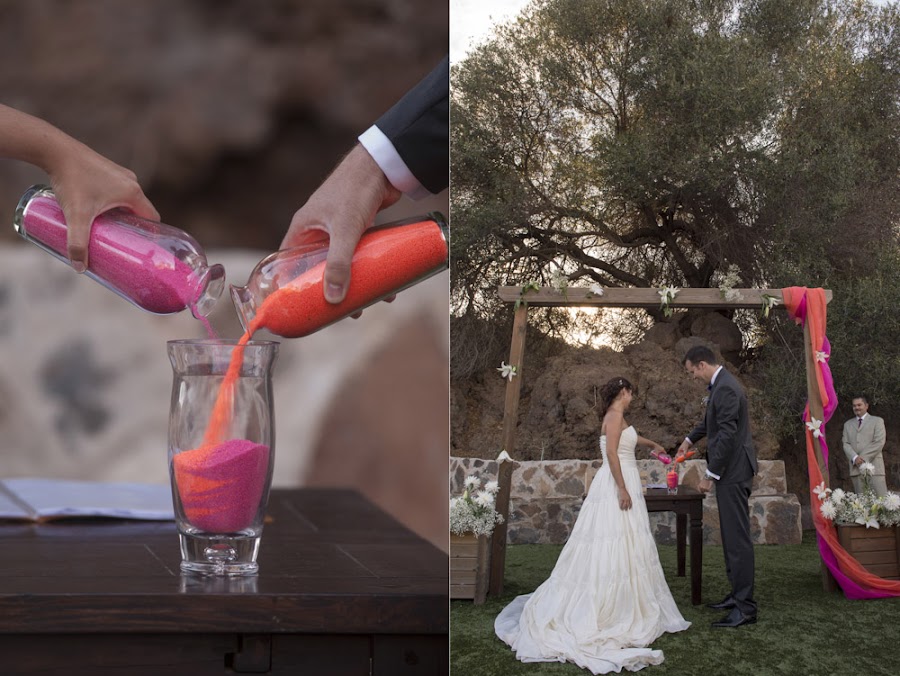 La ceremonia fue conducida por el tío de Jessi, por tanto fue una ceremonia muy intima, cercana y personal. Durante la ceremonia familiares y amigos se acercaron a dedicarles emotivas palabras en un día tan especial.