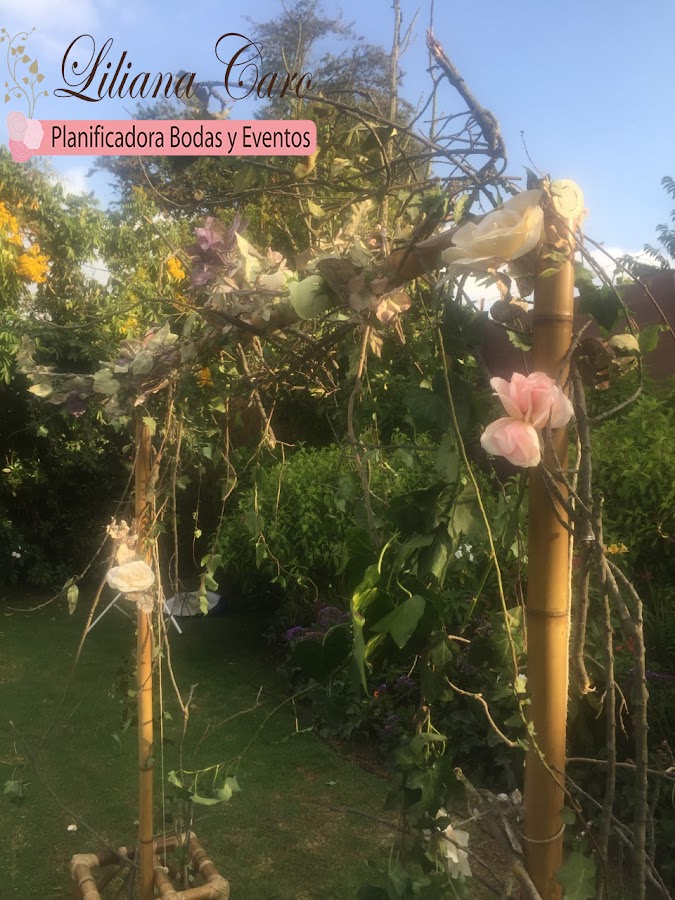 El arco de la ceremonia elaborado en bambú y aplicado por mi con flores ramas naturales y enredadera