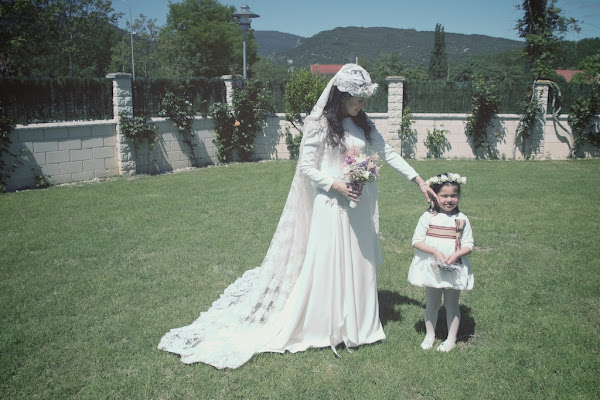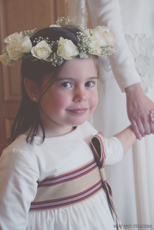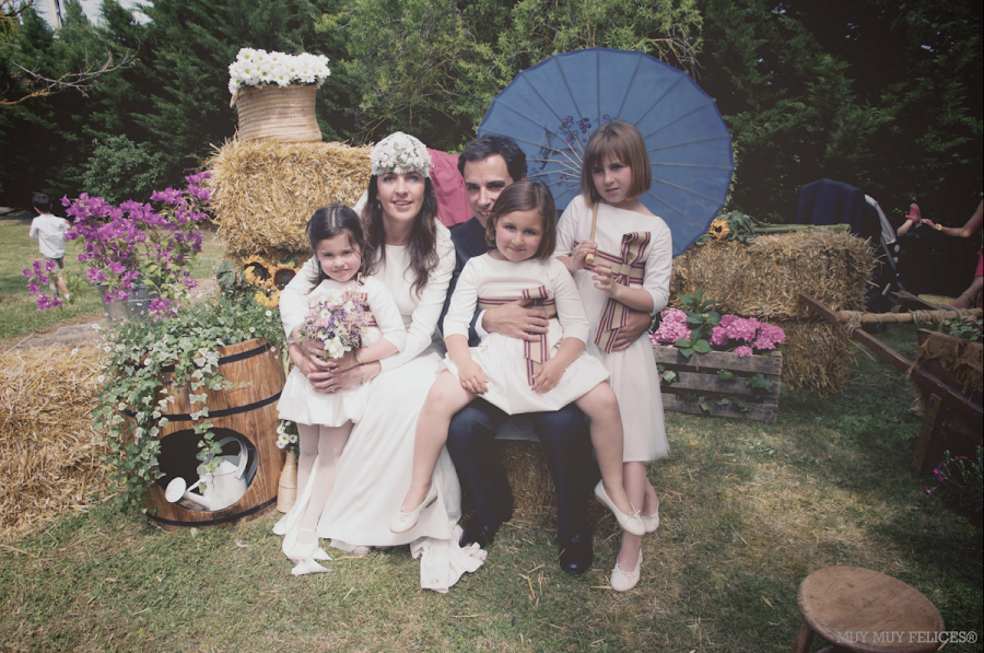 El Novio y el Padrino llevaron chaqués gris marengo de Hackett. Las niñas del cortejo iban vestidas de Teresa y Leticia.