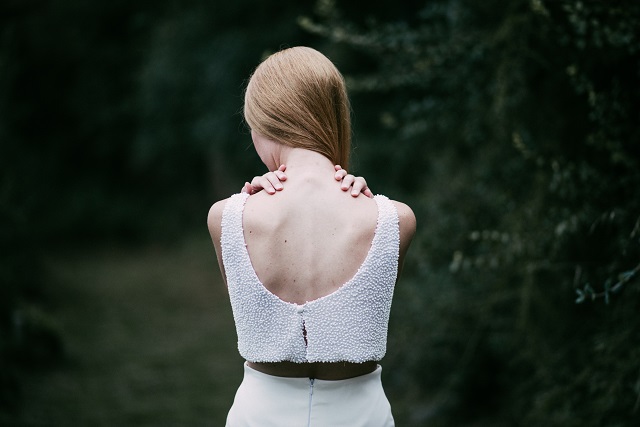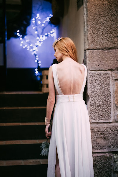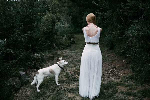 Erika eligió un vestido de Clara Brea Design, de pantalón de tul de seda, cuerpo en y chaqueta en Chanel. Como complemento una corona de Oh Fleurs!