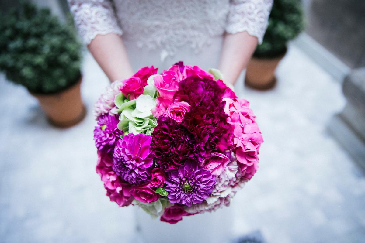Al tratarse de una boda pequeña, los invitados y los novios, pudieron disfrutar del acogedor Salón Romántico delicadamente decorado por Bouquet que también realizó el ramo de la novia