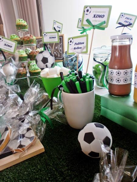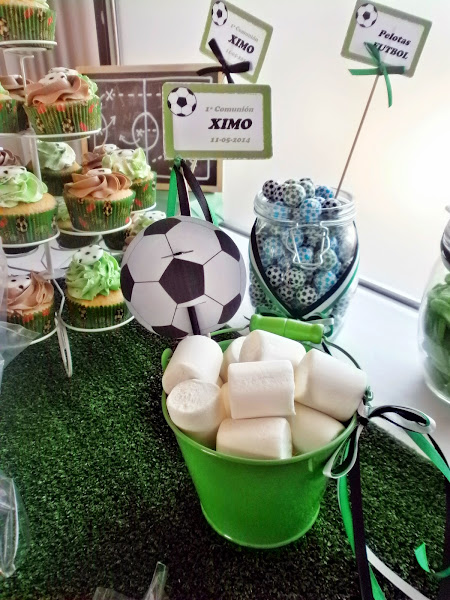 Así que manos a la obra Ximo tuvo su Candy Bar futbolera para el día de su Primera Comunión repleta de cupcakes, galletas en forma de pelota y camisetitas de su equipo, el Valencia, cakepops de nutella y un montón de golosinas para endulzar uno de los días más felices.