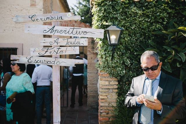 Así que a las 5 de la tarde ya estaba todo preparado en la Masía Olivera, magnifico complejo de casas rurales ubicado en Vilafranca del Penedés, esperando a todos los invitados y por supuesto, a los novios…