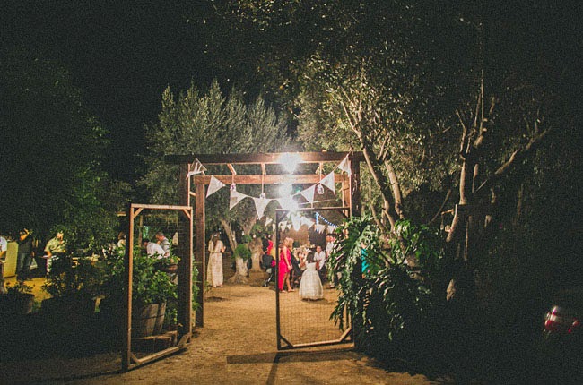 La cena se celebro en un pequeño restaurante del Valle de Guadalupe llamado Restaurante Familia Samarin, donde los invitados cenaron Pizza y mariscos frescos debajo de los coloridos banderines hechos a mano, colgados en los olivos que rodeaban la mesa de estilo imperial que habían elegido los novios, para poder disfrutar todos juntos de la celebración.