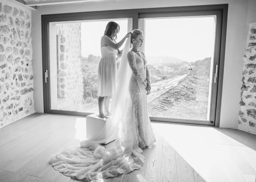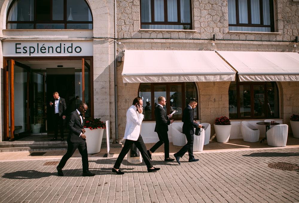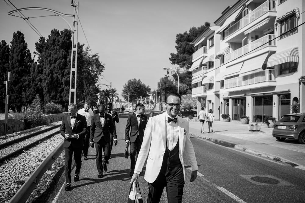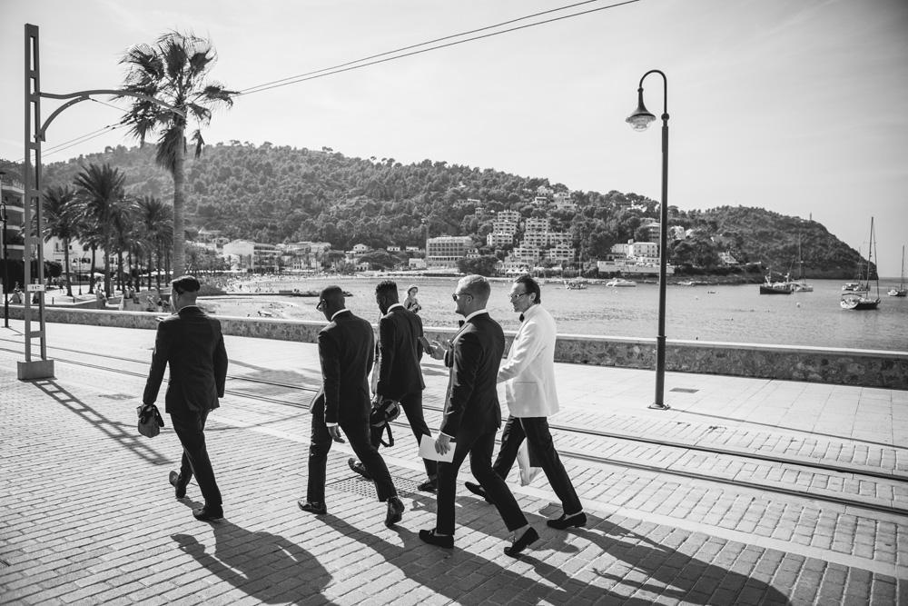 Mientras tanto el novio y los amigos disfrutaban de una buena cervecita y picoteo en el faro de Sóller donde se les preparo una merendola. Él se vistió en Hotel Espléndido desde donde saldrían todos los invitados camino a la preciosa finca de Son Marroig.