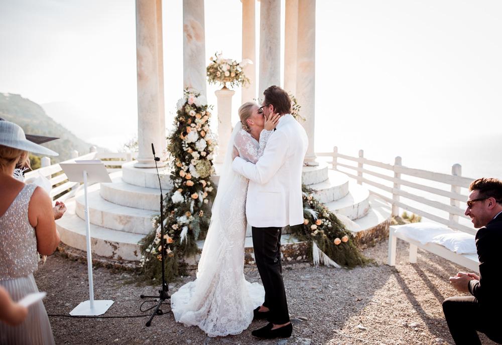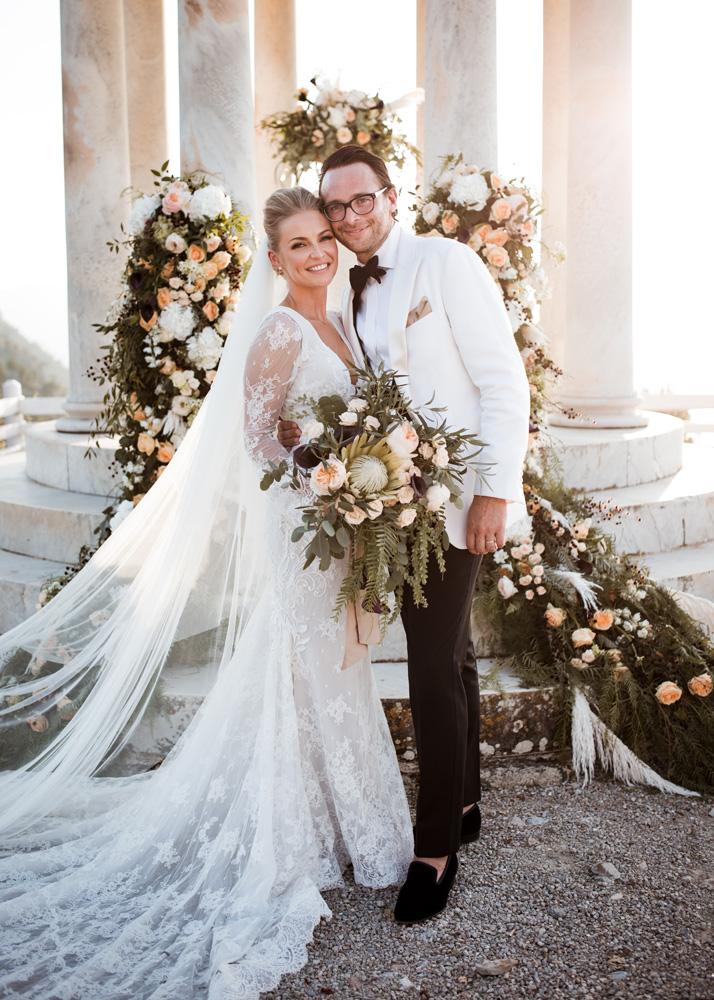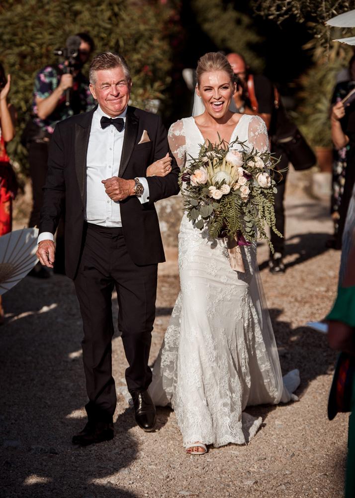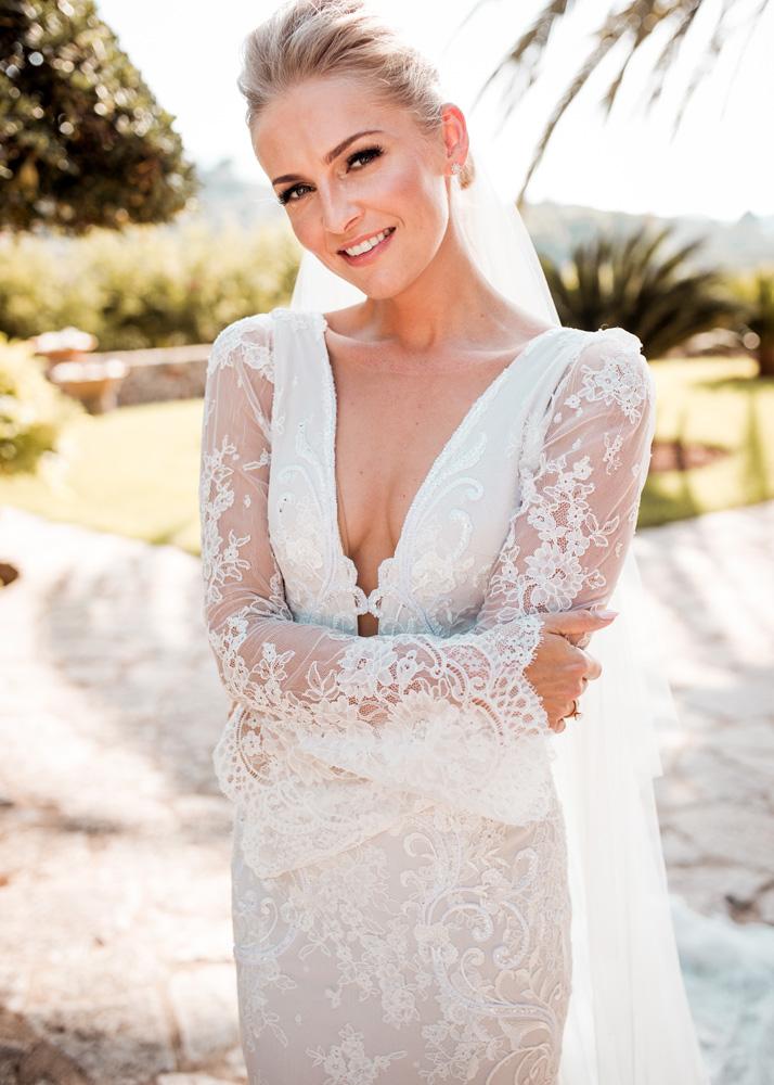 Fiel a su figura, la novia llegó sus 15 minutos tarde pero había valido la pena. Nicola vestía de la diseñadora israelí Julie Vino, un vestido que cuidaba cada detalle. Los zapatos se los regaló su amiga Jennifer Portman de la diseñadora Chloe Gosselin. Y los preciosos pendientes de diamantes en forma de estrella que lucía fue un regalo sorpresa de su futuro marido ¡¡que le hizo llegar esa misma mañana a la finca!!