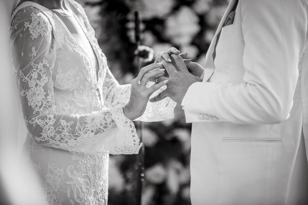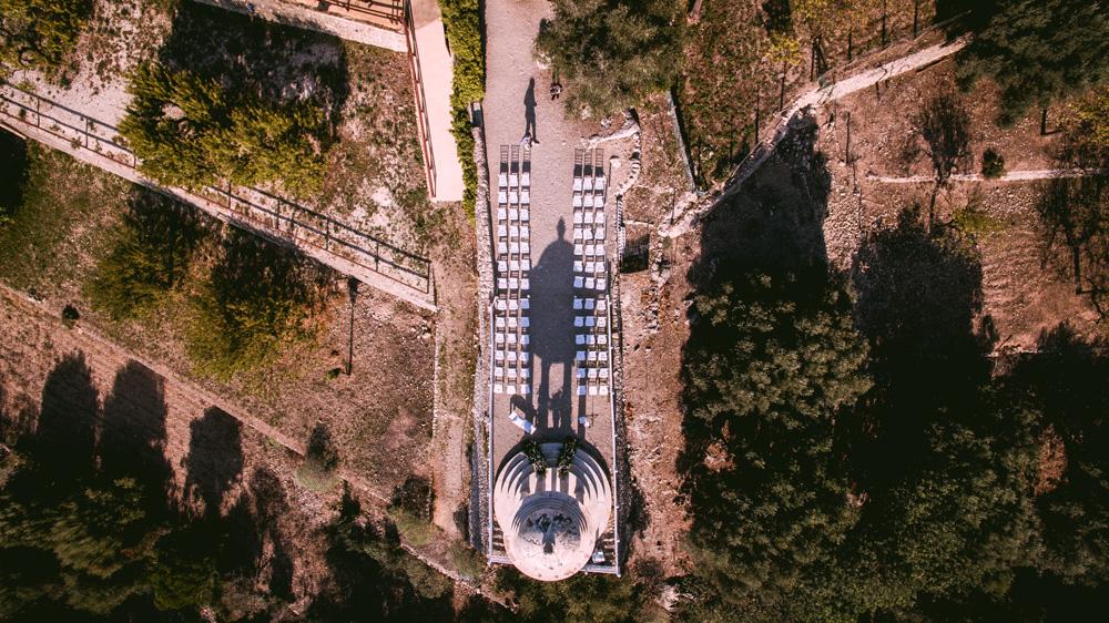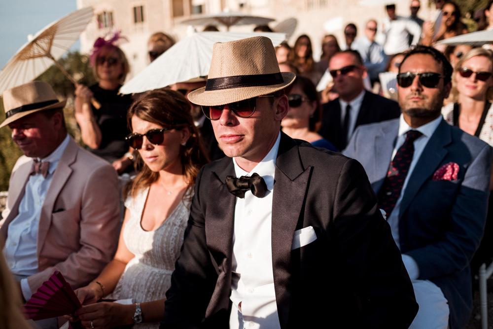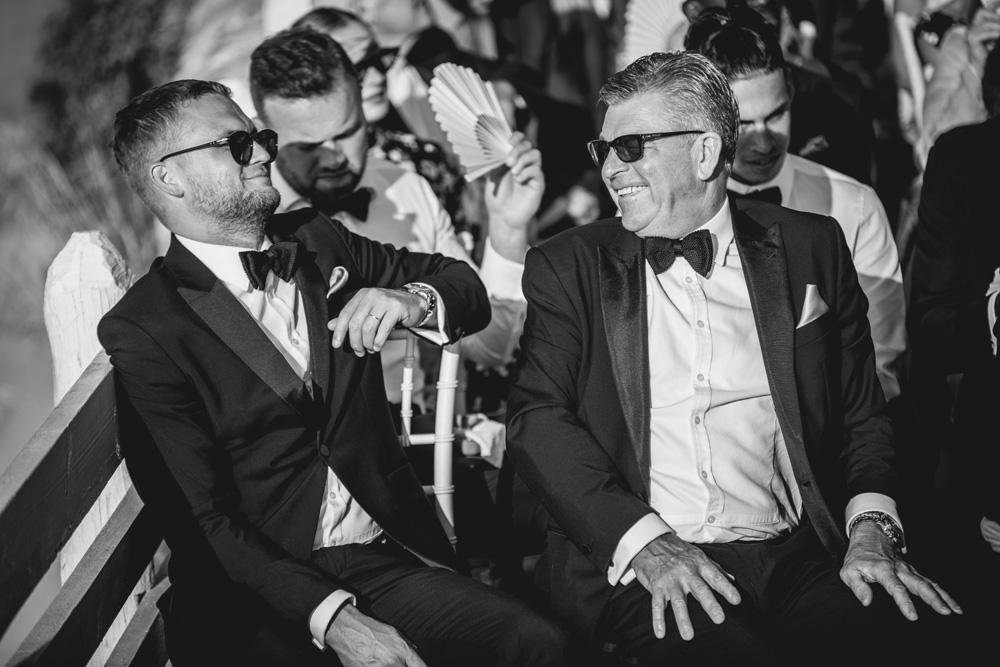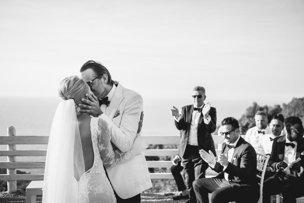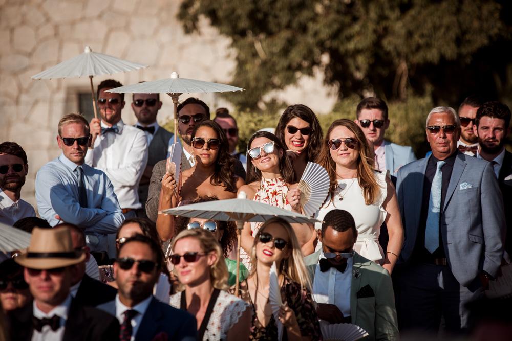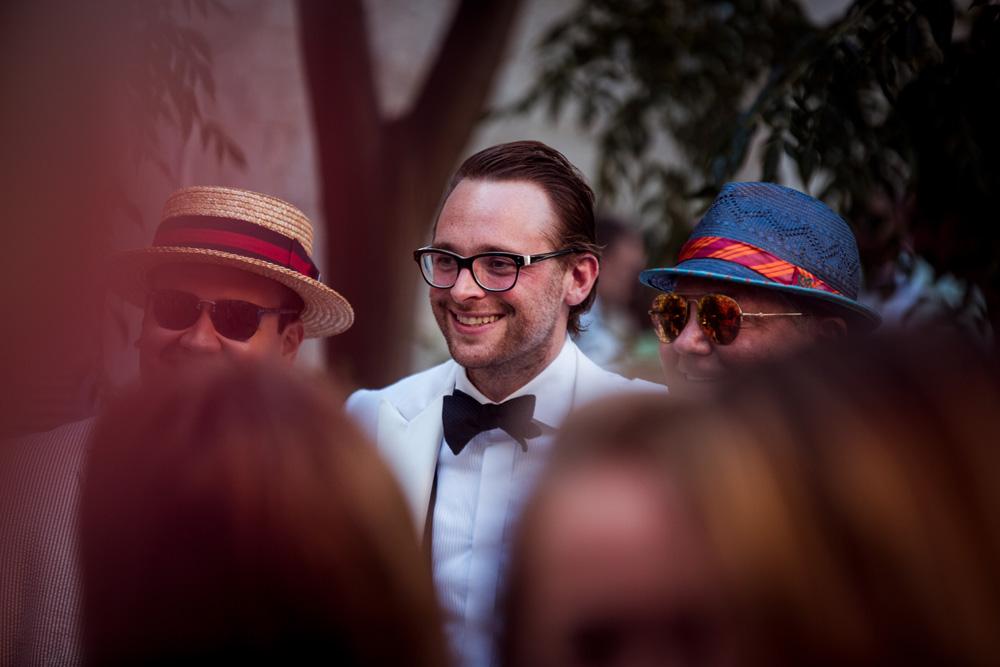 La ceremonia fue corta pero intensa, con risas, emociones y discursos de amigos de los novios. Una vez finalizada, los invitados tenían en sus manos unas cajitas personalizadas con pétalos para lanzar al son de Praise You de Fatboy Slim con la salida de los novios…