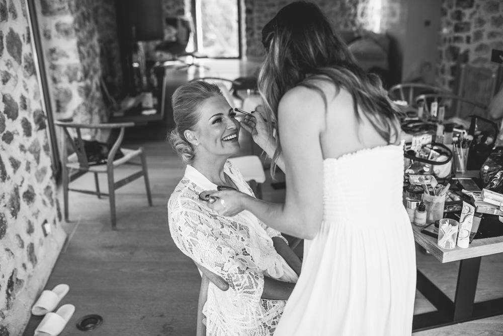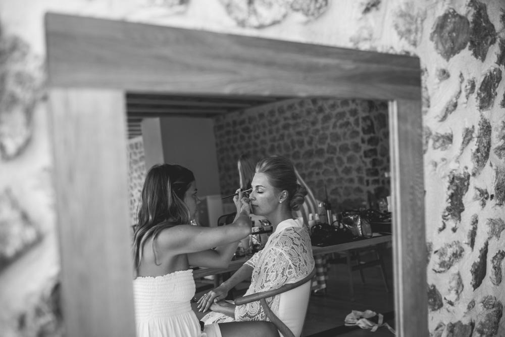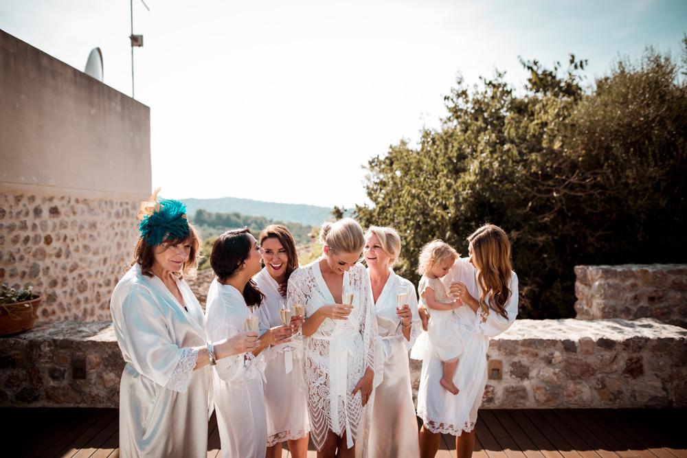 La novia se vistió en la finca junto a sus amigas y sus familiares más cercanos como su madre, donde se tomaron su tiempo para disfrutar del instante. Los preparativos de la novia, de la madrina de boda, y de sus damas de honor requiere de un auténtico ritual, y si además le añades un toque de desenfadada diversión tienes por resultado unos recuerdos imborrables…
