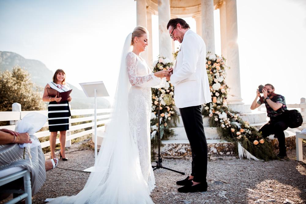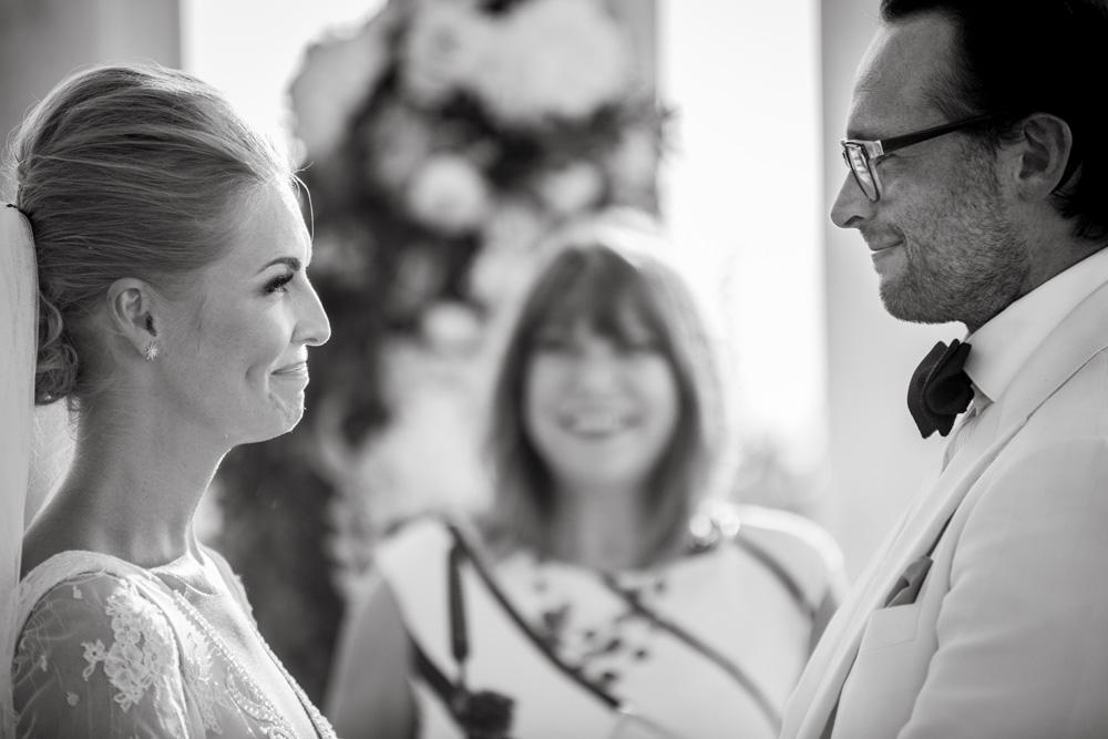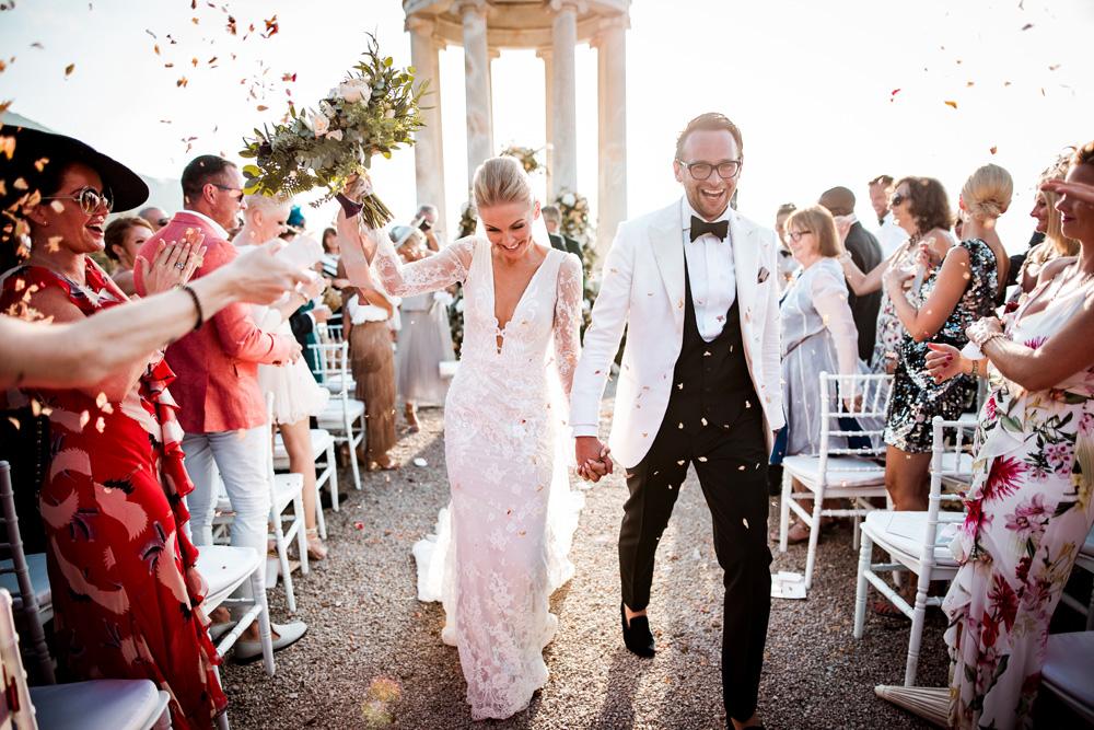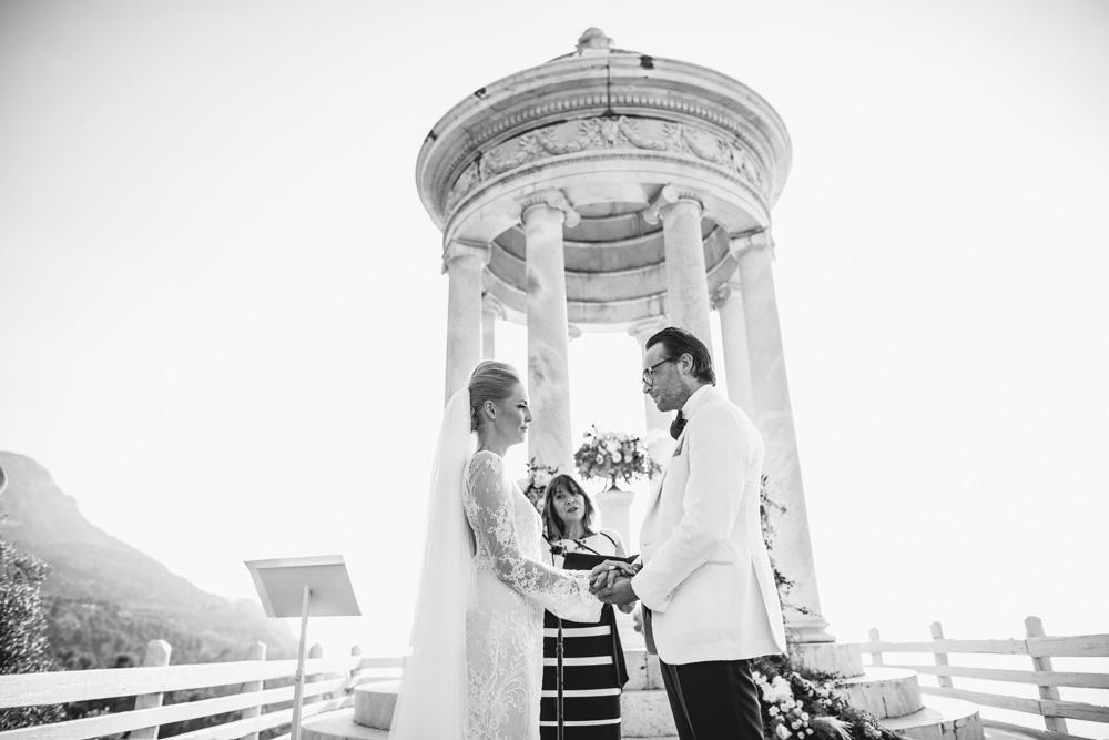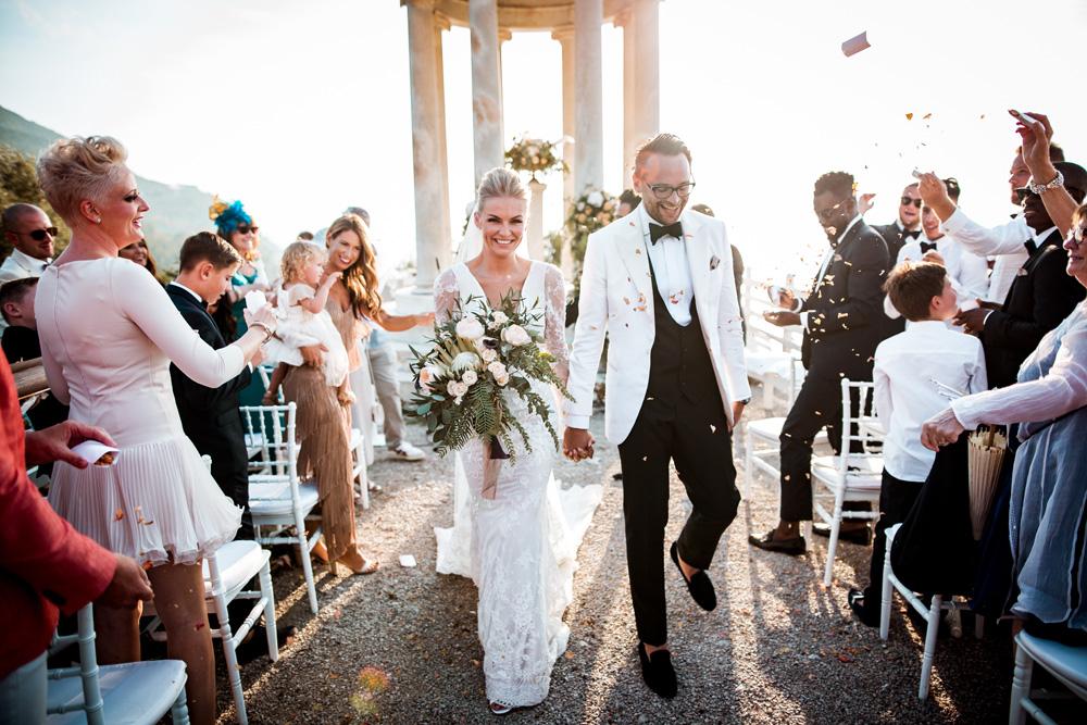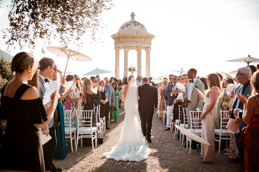 Le acompañaban al altar sus preciosas damas de honor que vestían de la marca española Womance. La novia quiso personalizar cada ramo con una cinta con sus iniciales en dorado a conjunto con el que lució ella. Como podéis ver… ¡se cuidó cada uno de los detalles! Y eso si… ¡la música no iba a ser menos! Para la ceremonia contaron con el deejay Asad Naqvi venido desde Londres y acompañado de violinista para marcar la entrada de los pequeños pajes, las bridesmaids y de la novia del brazo de su padre.