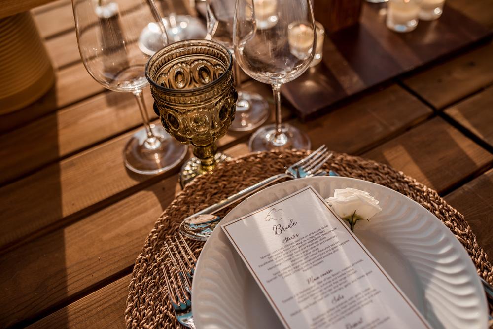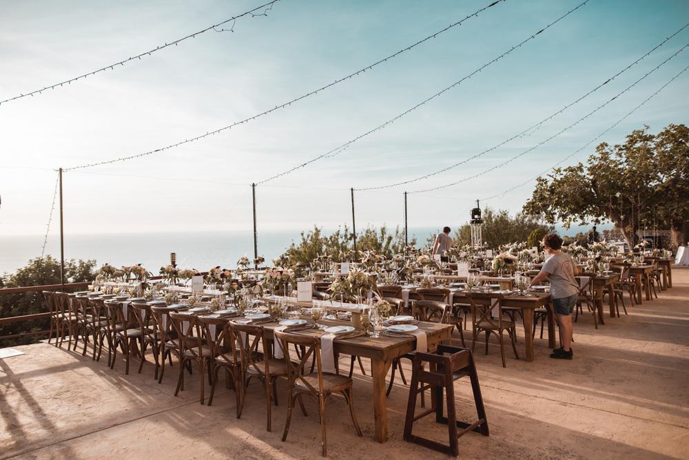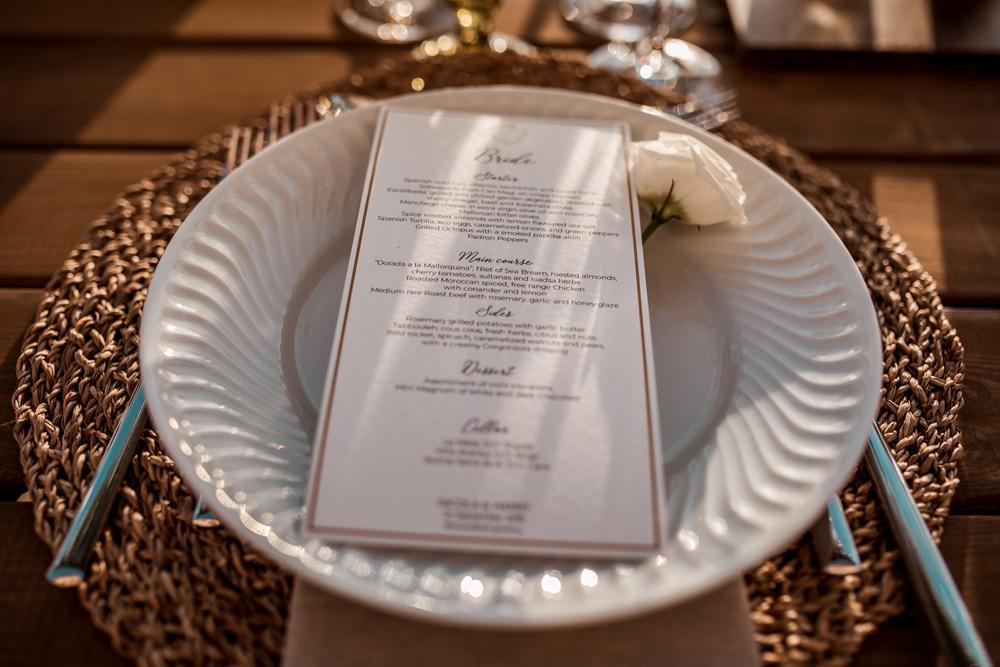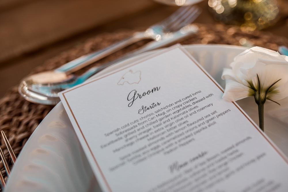 Organizaron una preciosa pre-boda en un restaurante en el puerto de Sóller donde disfrutaron de las vistas y la puesta de sol. Durante la bienvenida se les fue entregando a los invitados una bolsa personalizada con una estrella donde encontrarían un tarjetón y algunos detallitos de bienvenida. En el tarjetón se detallaban todos los aspectos necesarios para que los invitados pudieran seguir el planning de los ¡tres próximos días!