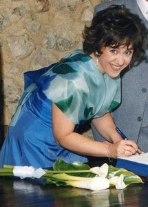 Bien, pues aquella noche tuve que explicar más de una vez que yo era la novia: recuerdo un momento concretamente, en los servicios del hotel, retocando el maquillaje y compartiendo confidencias con otras cuatro o cinco damitas vestidas de blanco; me miraron incrédulas cuando les dije que yo también era una novia. Como si una no se pudiese casar si no era de blanco.
