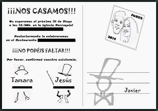5. Por último coloqué la imagen del sello. Como imagen puedes colocar algún dibujo con unos novios, una foto de los mismos o, lo que hice yo, una caricatura en blanco y negro que nos realizó mi tío. Bueno... ¡¡¡TODOS los dibujos los realizó él!!!