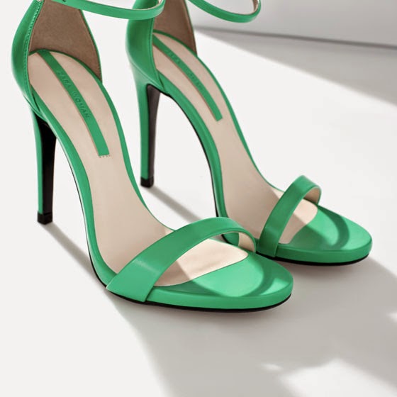 Sandalias verde menta de tiras y tacón alto. De Zara. Precio: 49,95 euros.