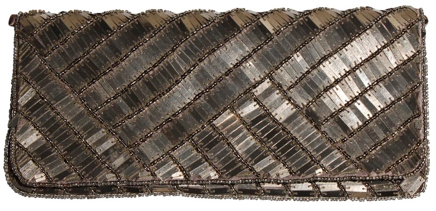 Bolso de mano o Clutch con lentejuelas en plata satinado de la colección Senso di Donna de Brijou Brigitte: Precio 24,95 euros.