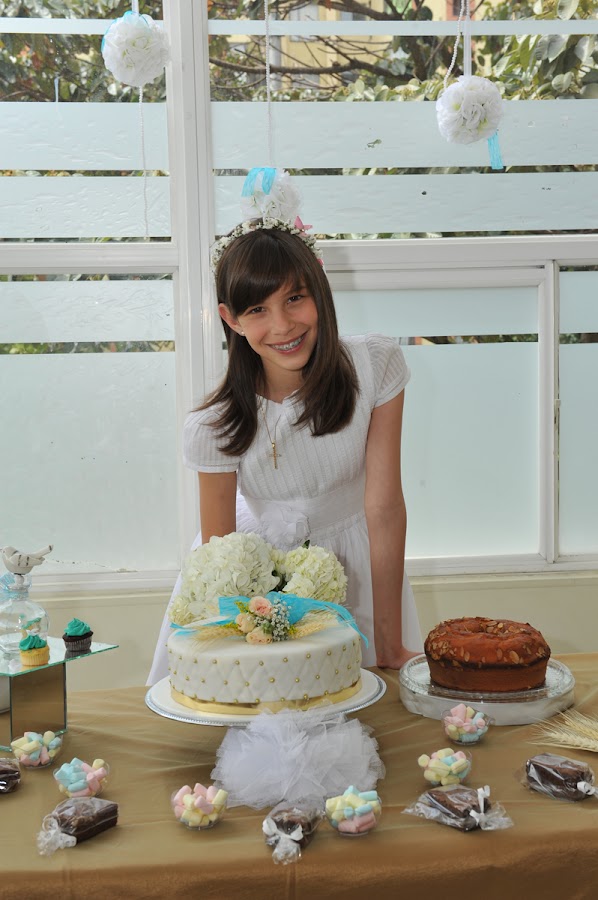 Oriana hizo su primera comunión, una niña muy delicada, sencilla y especial, muy descomplicados, una reunión super familiar tan agradable... les acompañamos y decoramos su mesita para pastel., MaryOlga quería la decoración medio vintage, así que sacamos su vajilla! los pajaritos le daban el toque de jardín, como siempre un placer hacer la decoración, los centros de mesa con algunos toques turquesa porque así lo quería la niña y las hermosas hortensias.... Como siempre me encanta decir, que los diseñé para la nena...