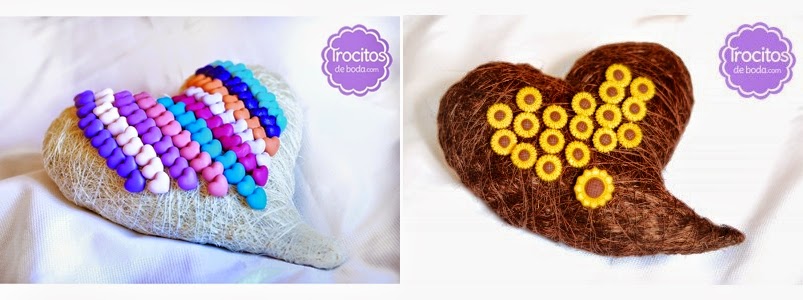 With multiple ornaments , personalized according to the theme of the wedding as colorful flowers , hearts , fruit. In trocitosdeboda.com you can find a wide range , with prices ranging from 0.37, 0.55 unit.