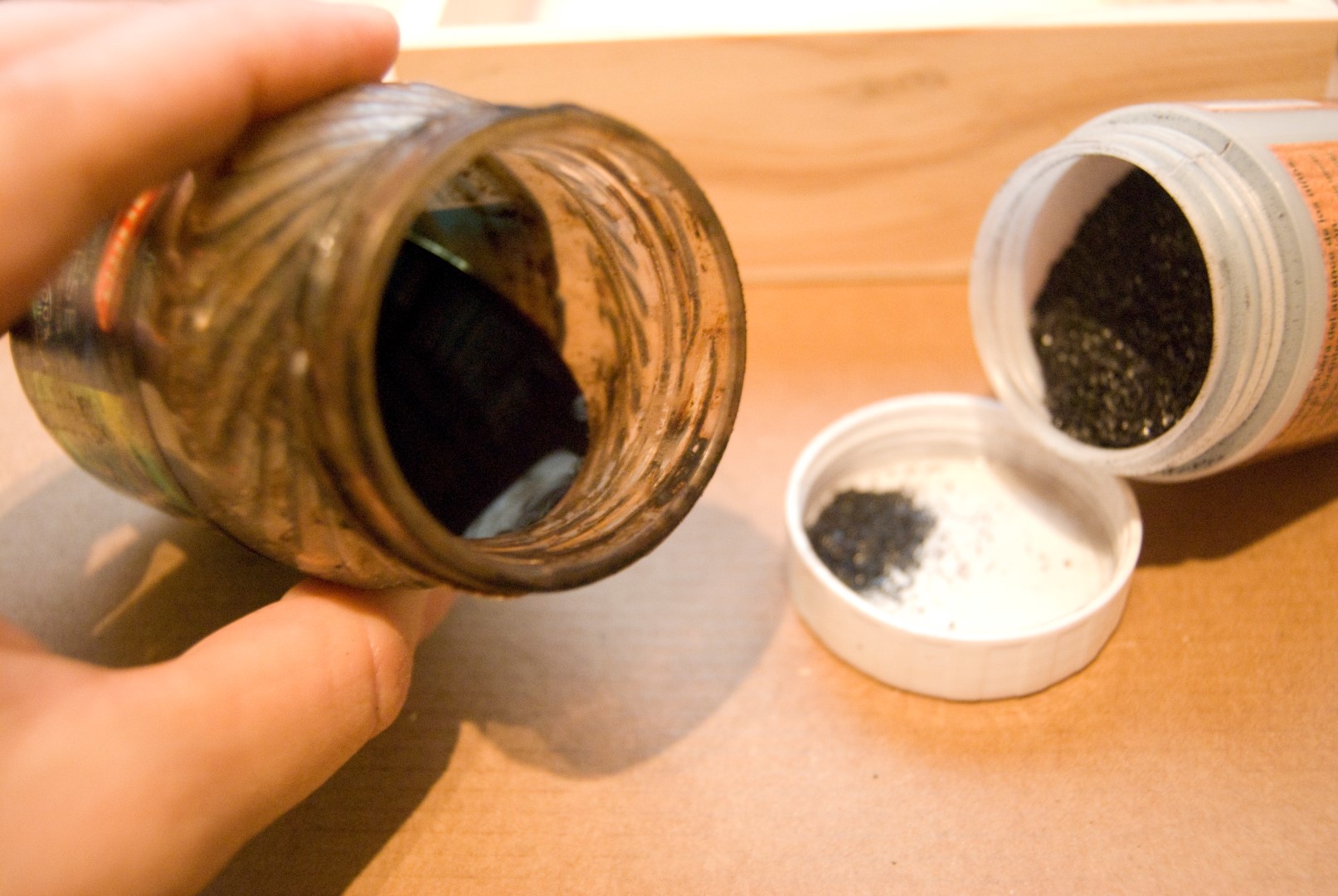 El tinte que he usado para pintar la primera capa de la madera es nogalina. Un tinte que viene en polvo, y deja un tono más oscuro o más claro según la proporción de agua con que lo mezclemos.