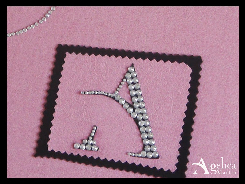 Esta hecho con dos colores (chocolate y rosa) de polipiel, figuras troqueladas y piedras de fantasía!!! :)