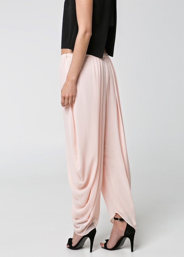 Panatalón Harem Cruzado en color rosa pastel. De Mango. Precio: 45,99 euros.
