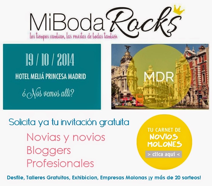 El 19 de octubre en el Hotel Melia Princesa ***** de Madrid celebraremos la tercera quedada de novias y empresas molonas: Mi Boda Rocks Experience Madrid 2014.
