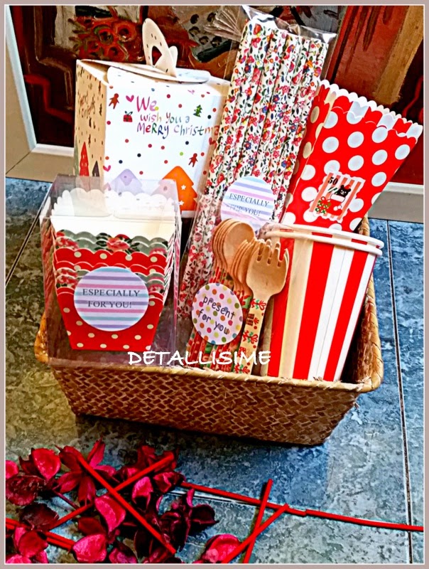 - dos tarrinas de 11 cms ( una de rayas rojas y blancas y la otra roja de lunares)