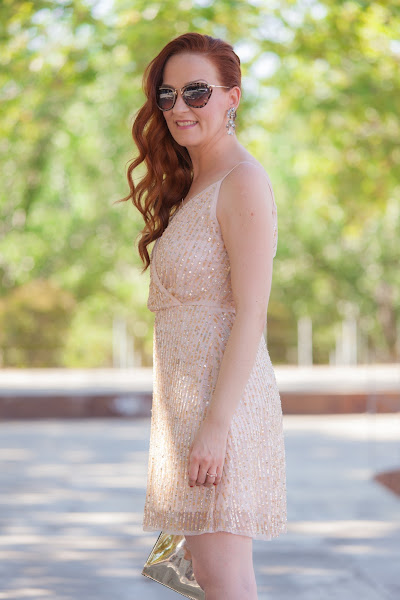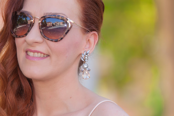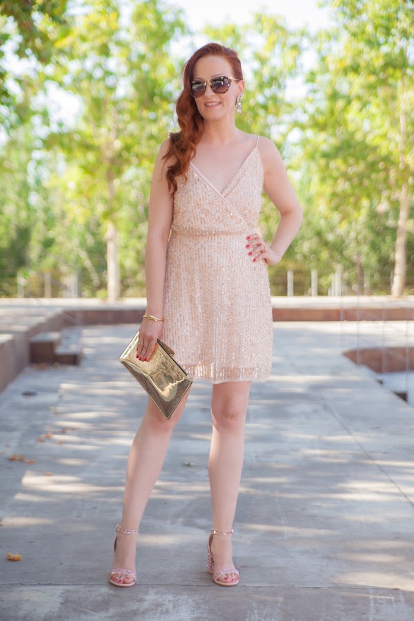 Para empezar con la semana os enseño el estilismo que llevé para la boda de mi prima. En la invitación nos indicaron que se debía vestir de blanco o colores claros y con looks de fiesta pero informales (fuera tocados, trajes de chaqueta, corbatas, pajaritas...). La verdad es que lo de vestir de blanco o colores claros me condicionó bastante, con mi tez blanquita no me gustaba como me quedaba nada de lo que veía, hasta que cuando menos buscaba di con esta preciosidad de vestido en tonos nude de Bershka. En la vida habría imaginado que podría comprarme un look de boda allí. Pero oye, que además del vestido me pasé por la sección de calzado y allí tenía la preciosidad de zapatos que os muestro. Lo mejor de todo es que con los precios de Bershka monté un outfit súper bonito y muy muy económico. Además, justo dos días antes de la boda me llegaron esta preciosidad de pendientes joya que le iban más que perfectos al estilismo.