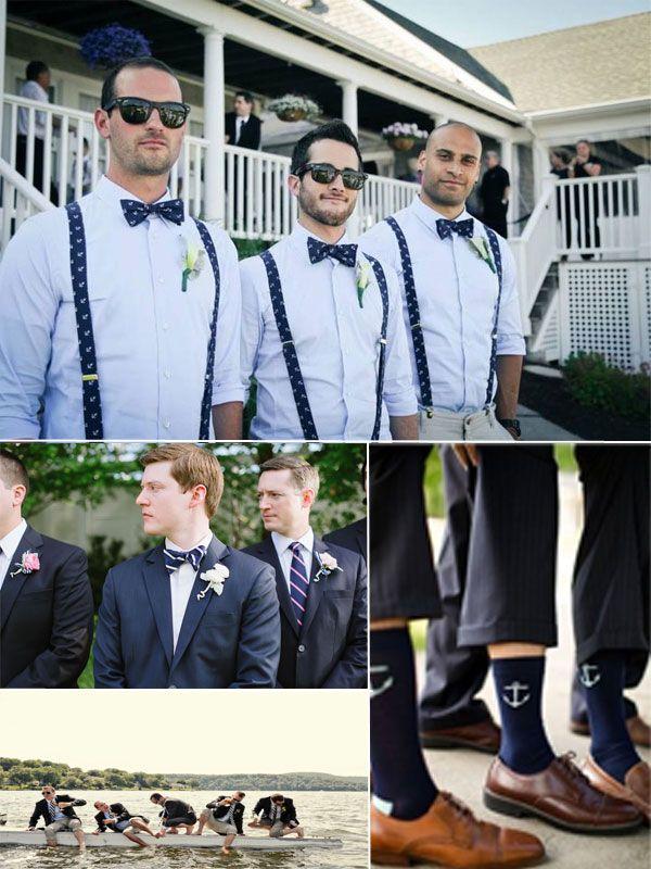 Los amigos del novio cobran importancia con atuendos similares a los del novio, a juego de las damas, o con detalles personalizados que tienen que ver con la temática de la boda. Se llevan trajes iguales cambiando la corbata, o pajaritas, tirantes, calcetines iguales o incluso los gemelos.