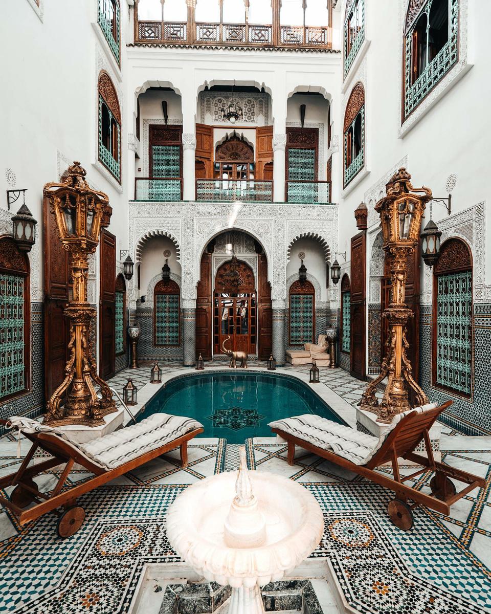 Podéis alojaros como reyes en el palacio rosa Amanjena, o optar por algo un poco más tradicional-chic en la hermosa ciudad de Fez, en el elegante Riad Fes. El Kasbah Tamadot de Richard Branson, es una magnífica opción si deseáis explorar montañas del Atlas y hacer senderismo. Essaouira es un pueblo costero encantador con camellos en la playa y muchos caminos empedrados para explorar.