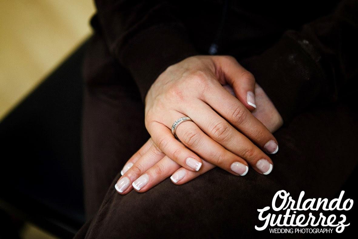 Odriana optó para sus manos por la manicura francesa, como hacemos la mayoría de las novias ya queda muy elegante, junto con su anillo de pedida, como podéis ver en la siguiente imagen.