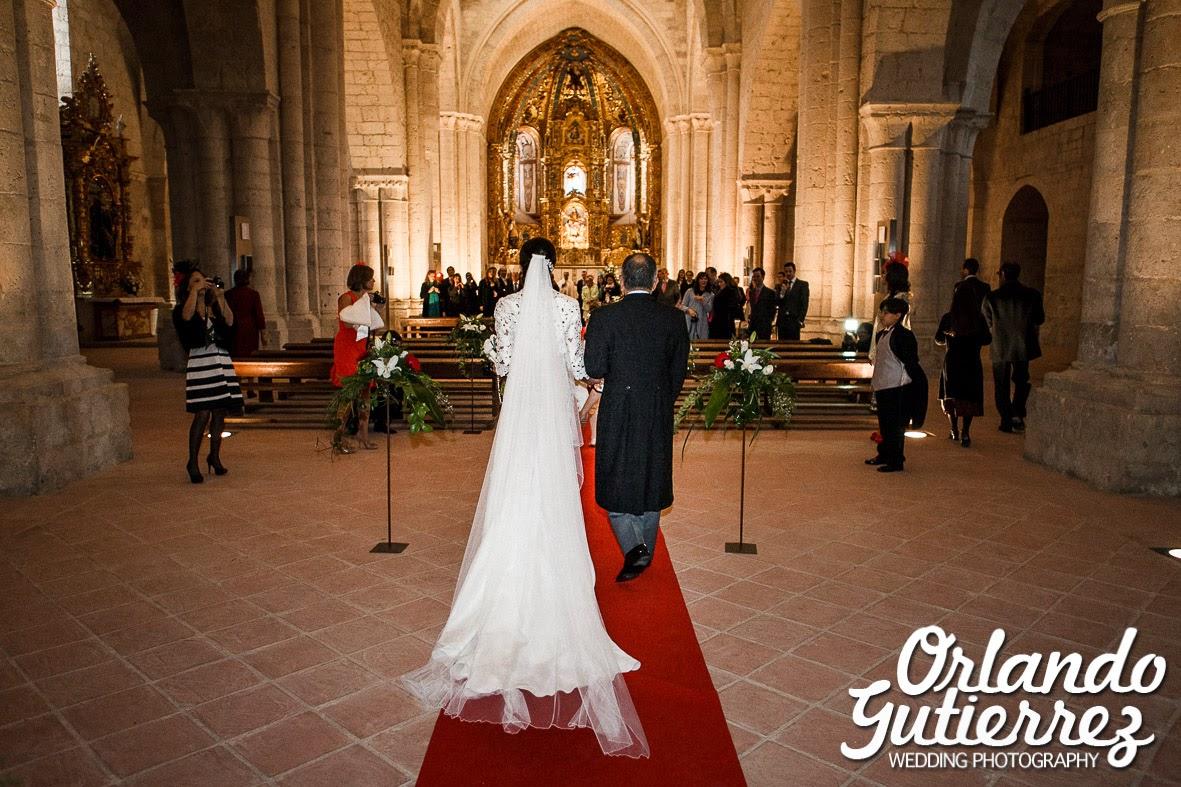 Una vez vestidos llegó el momento de darse el sí quiero. El lugar elegido para la ceremonia fue el Monasterio de Santa María de Valbuena, en la pedanía de San Bernardo perteneciente a Valbuena de Duero (Valladolid). Un lugar lleno de encanto y precioso para una ceremonia religiosa.