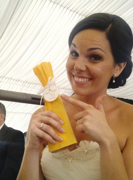 Para las mujeres casadas, se hicieron jabones combinando dos colores de arcilla, la blanca y la rosa. Dado que la combinación se hizo a mano, cada jabón era único. El aroma escogido para el jabón fue el azahar, un olor muy típico de la época en la que nos casamos. El nombre que decidimos para los jabones fue "Aroma de Verano". Podéis ver el post de Raquel sobre ellos aquí.