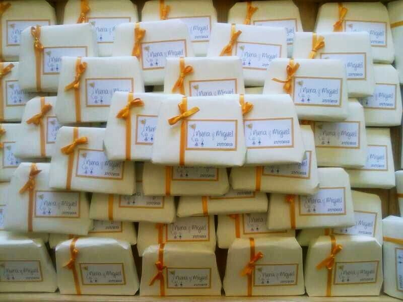 En nuestro caso lo dividimos, para las mujeres decidimos hacer jabones y bálsamos. De estos detalles se encargó la madre de Miguel. Raquel de El Huerto de los Jabones, fue la encargada de realizarlos, todos ellos con ingredientes naturales. Los bálsamos fueron para las mujeres solteras, el aroma que escogimos fue el melocotón, un sabor muy dulce, del packaging también se encargó Raquel.