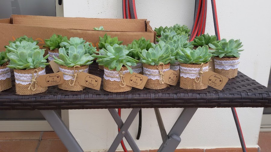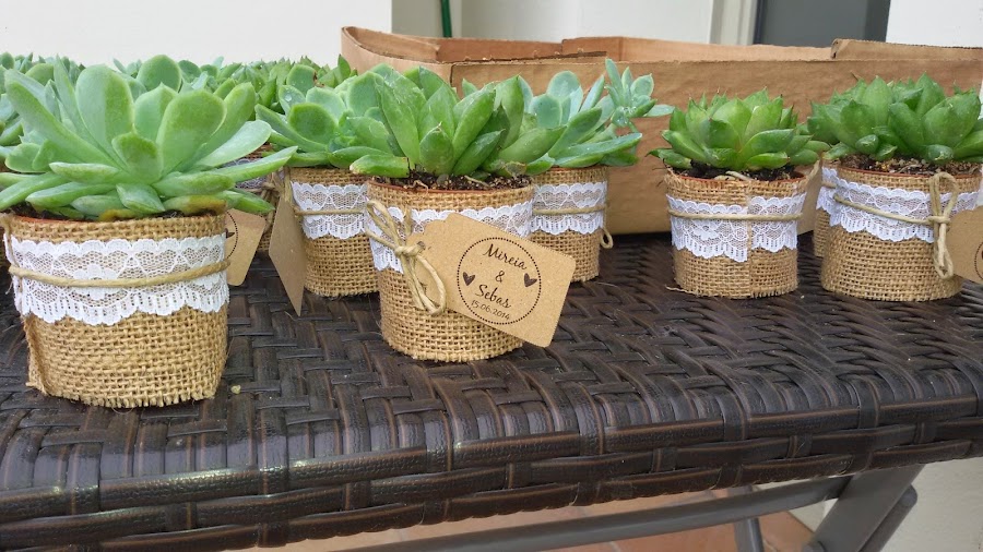 Anteriormente cree un post, sobre dar plantas como detalle a los invitados. Al final me anime, y me decidí a darle una plantita a todo el mundo, la verdad es que gusto mucho, ya que a bastantes de los invitados les gusta el tema de las plantas, y como me dijeron es algo que durara, y que no tendrán encerrado en un cajón. Aquí os dejo el resultado...