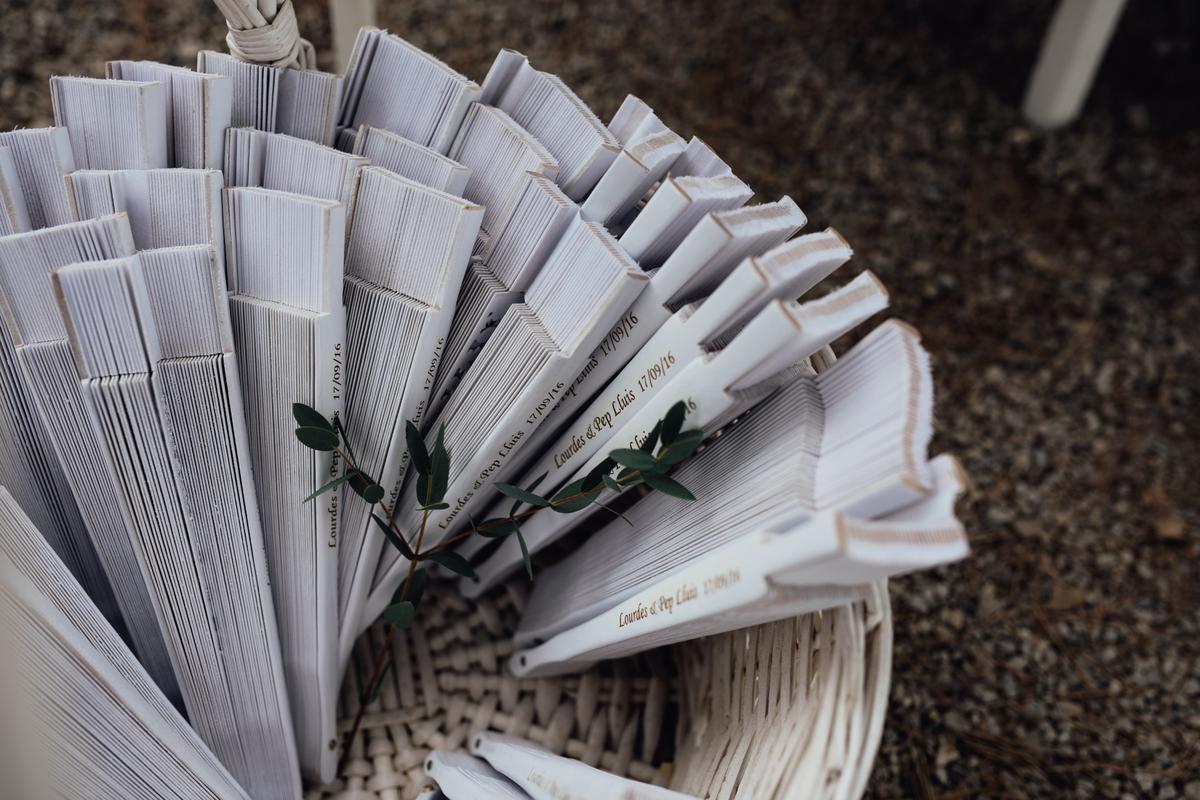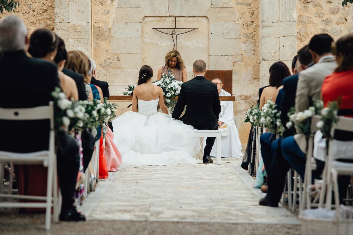Junto con Moments, fuimos eligiendo a los proveedores que formarían parte de nuestra boda y que, debido a su experiencia y profesionalidad, no defraudaron. Después de varias visitas, decidimos que el lugar perfecto para la ceremonia sería la Parroquia de Portals y que el banquete sería en la Finca Comassema. Queriamos que todo fuera al aire libre, así que mi prima, viéndome nerviosa por las posibles lluvias y en un intento por tranquilizarme, cumplió con la tradición y llevó huevos a Santa Clara! Yo por si acaso, no paraba de repetirme, “novia mojada, novia afortunada”, jaja!.