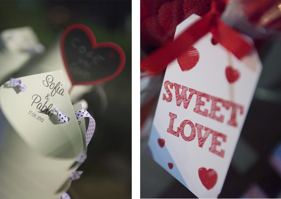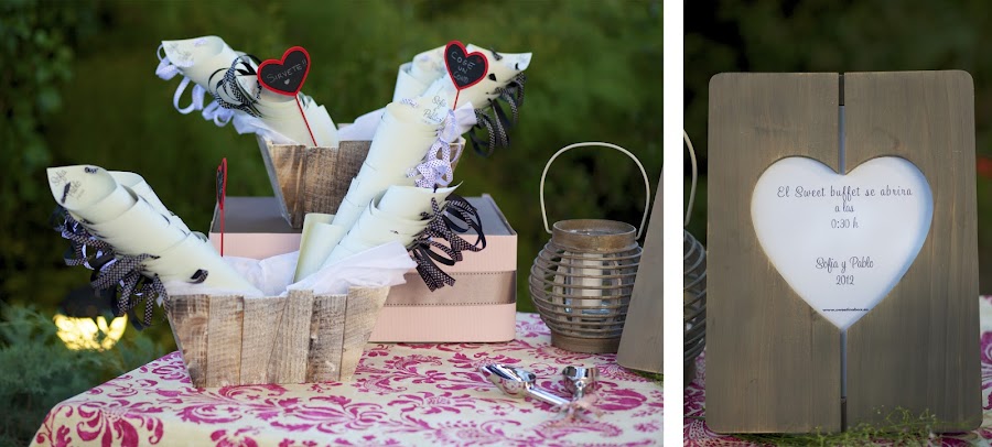 Un detalle muy original, cucuruchos de papel con el nombre de los novios.